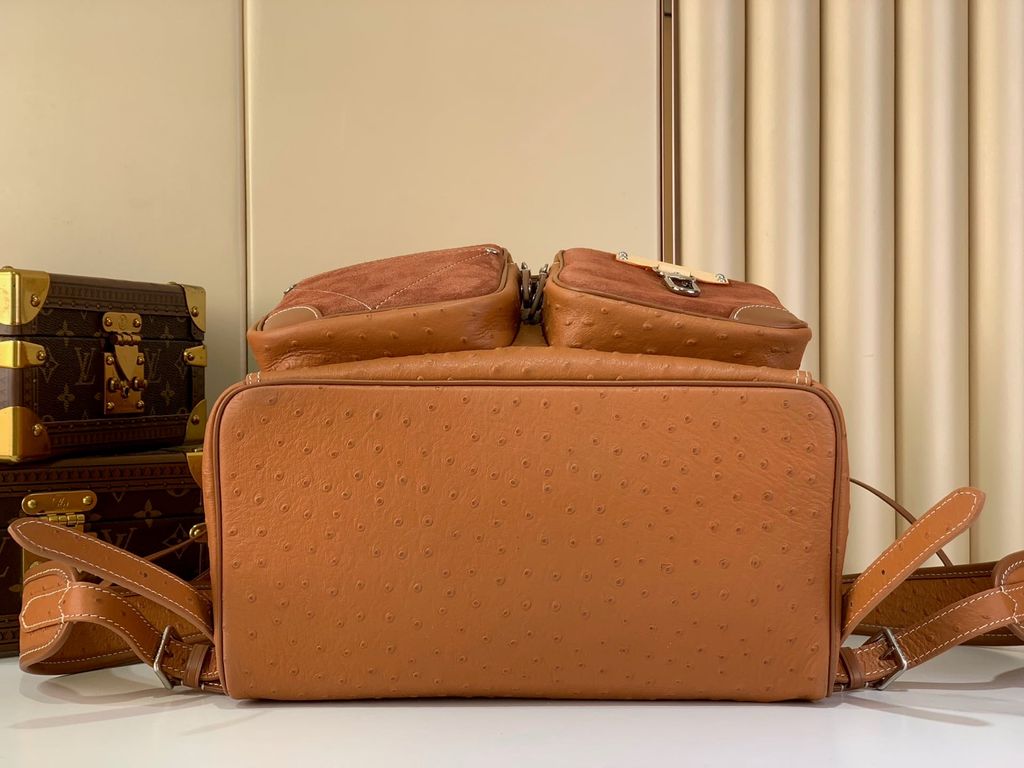 • Toàn thân xử lý da dập vân đà điểu với mật độ hạt nổi rõ, đều và sâu, tạo hiệu ứng bề mặt rất riêng; đây là chi tiết khiến tổng thể trở nên có giá trị thị giác hơn hẳn nền da trơn thông thường.