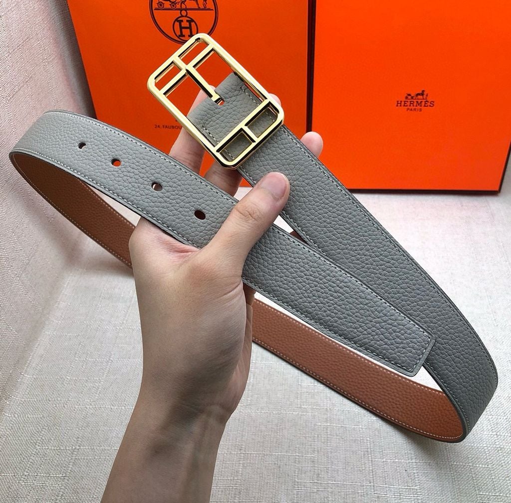 Thắt lưng khóa chốt Hermès, hoa văn đính đá hai mặt, rộng 32mm, hai mặt, có khóa bạc H chính thức