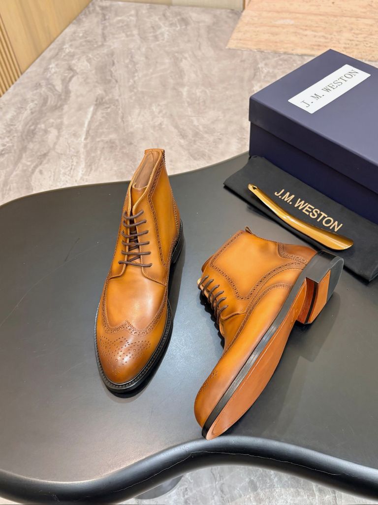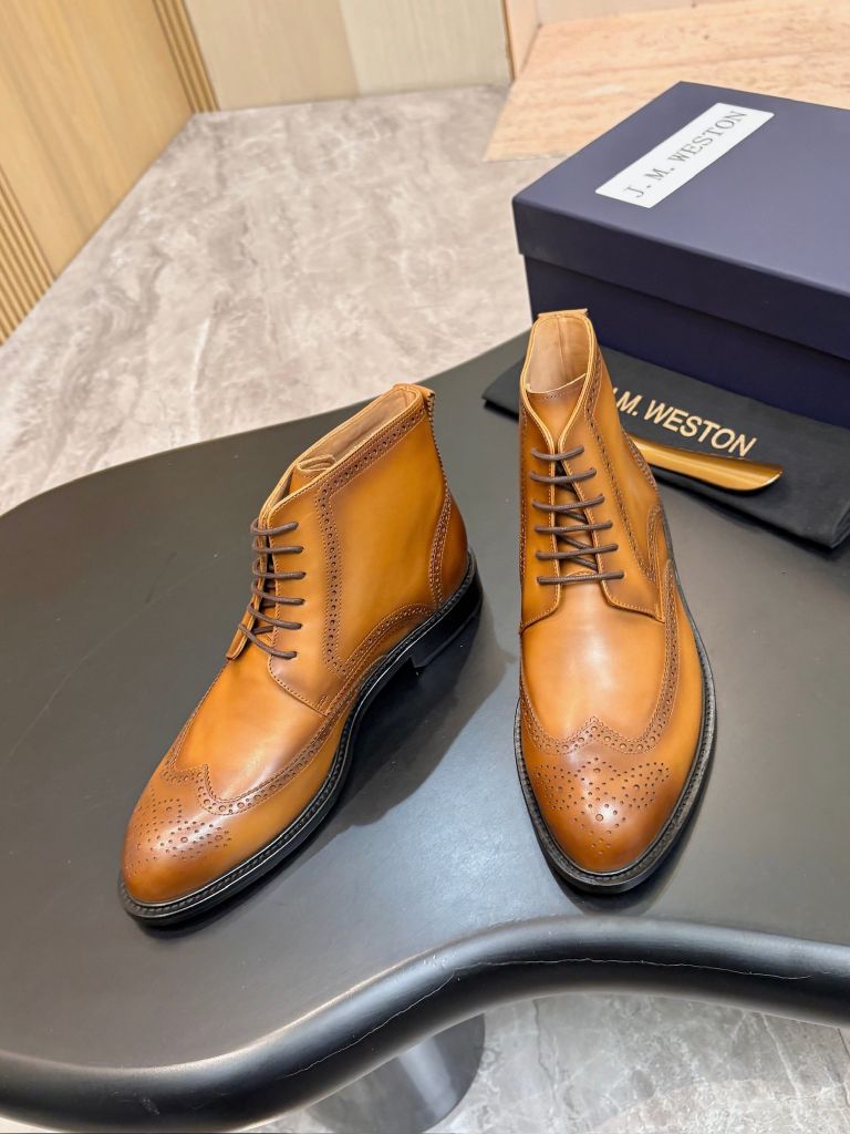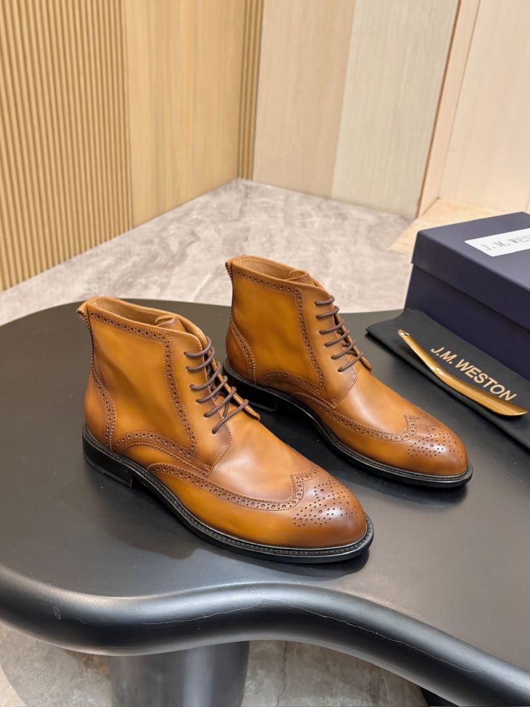 • Phom boot cổ lửng chuẩn quý ông châu Âu, mũi wingtip đục lỗ brogue sắc nét, tôn bàn chân gọn gàng sang trọng.