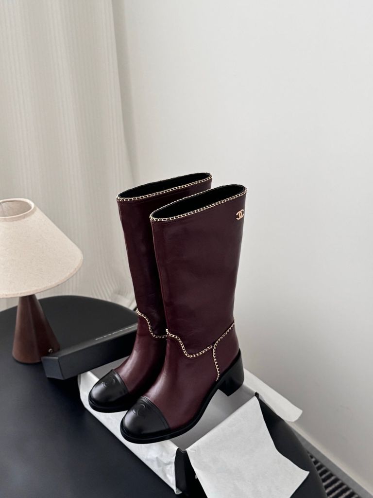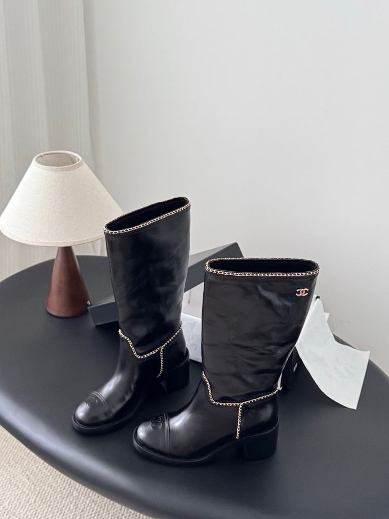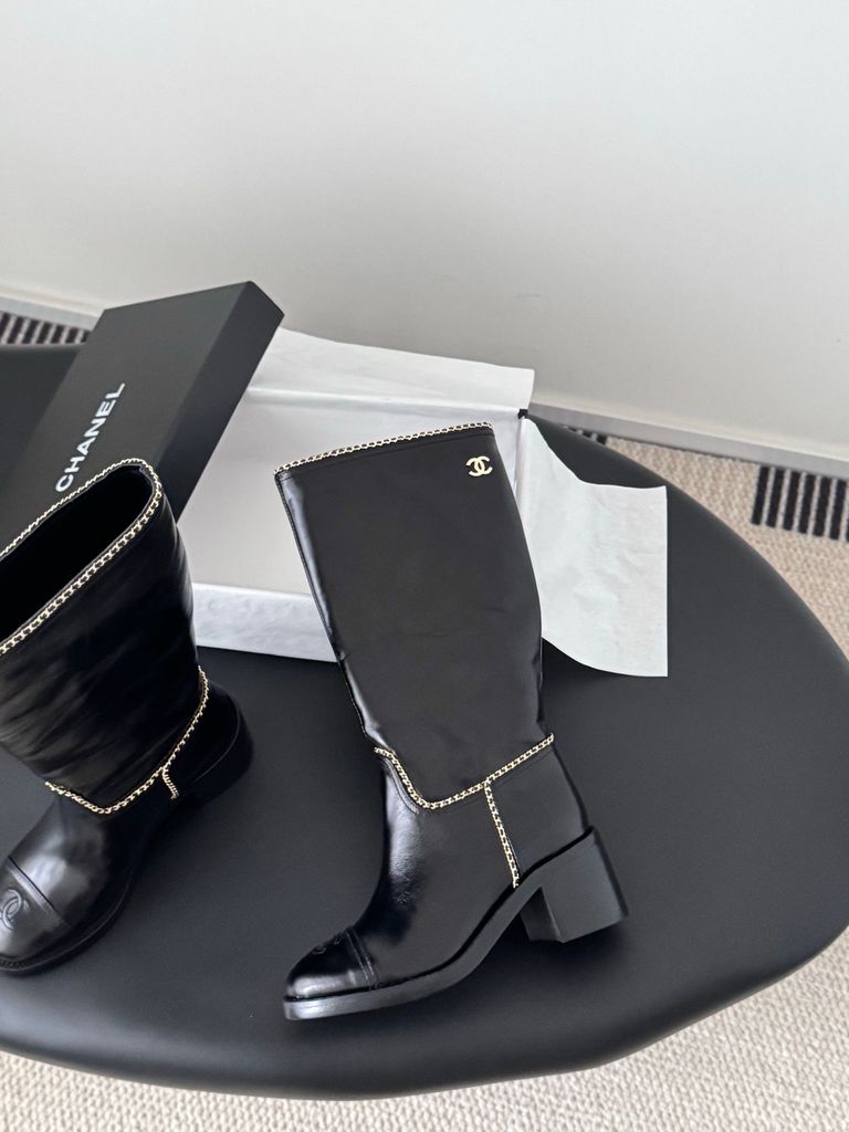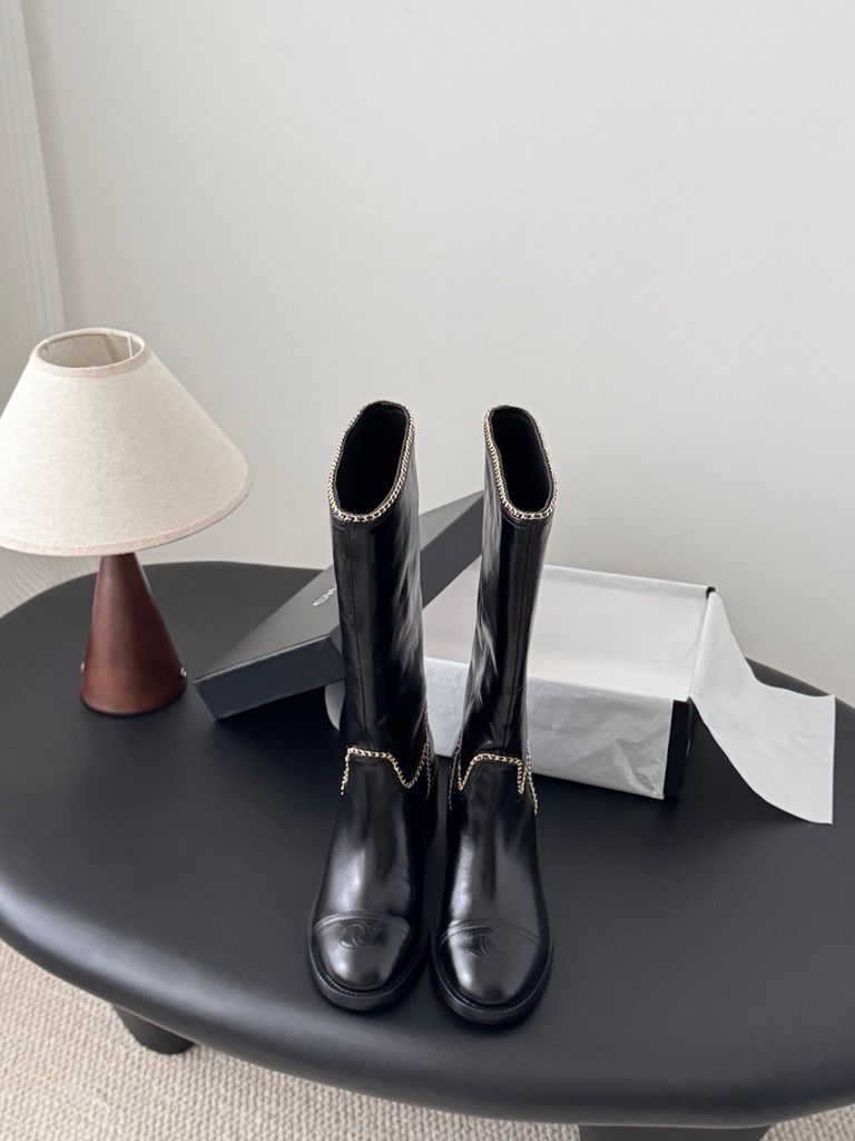 • Viền dây xích kim loại chạy dọc thân boot tạo điểm nhấn “classic Chanel”, nhìn là nhận ra ngay.