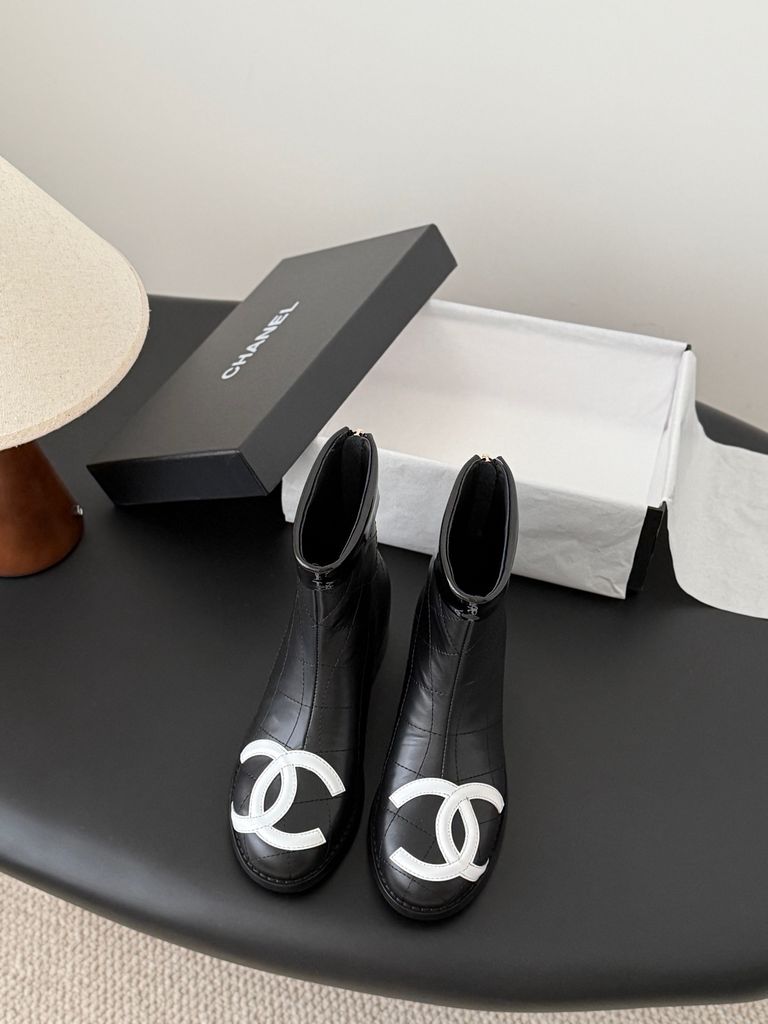 BOOT NỮ CHAN* VINTAGE CỔ NGẮN DA ĐEN THANH LỊCH 2150k (HÀNG ORDER QUỐC TẾ)