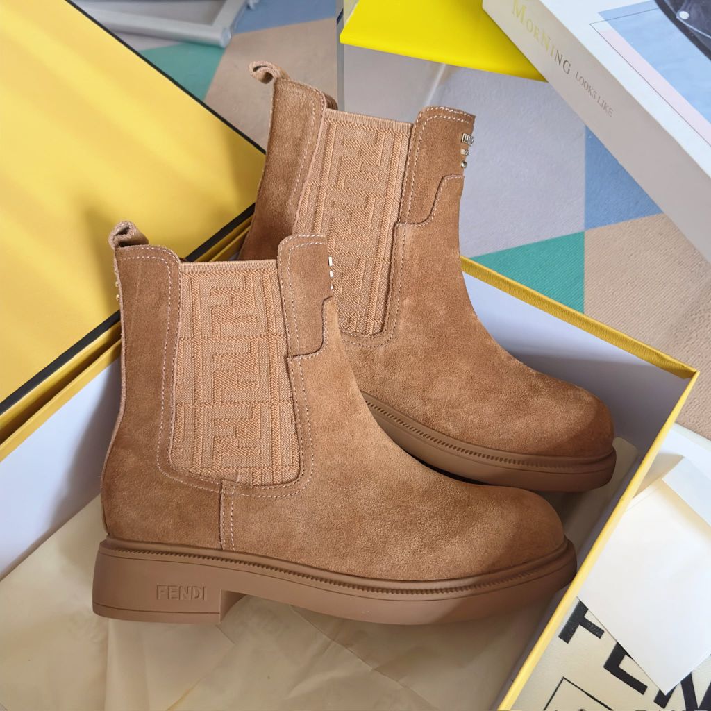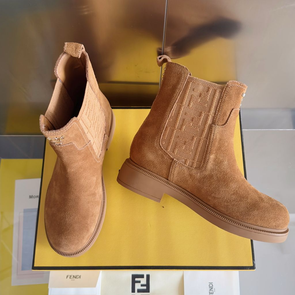 BOOT NỮ FEND* CHELSEA FILO FF LOGO – DA BÒ ĐEN, ĐẾ 3.5CM