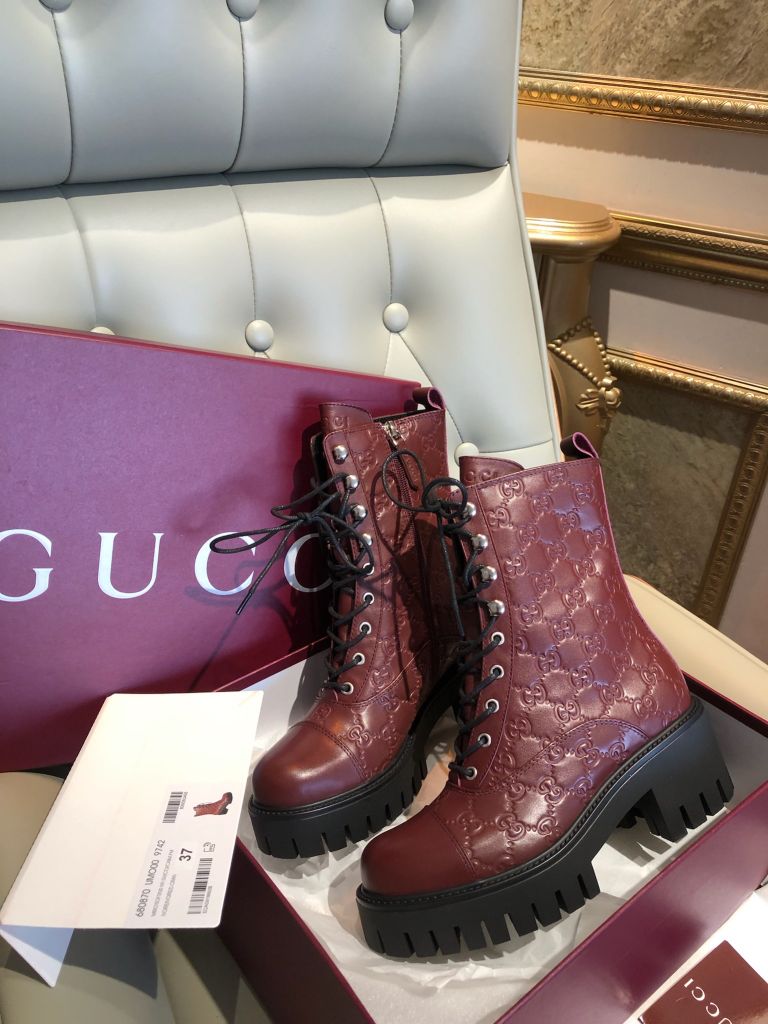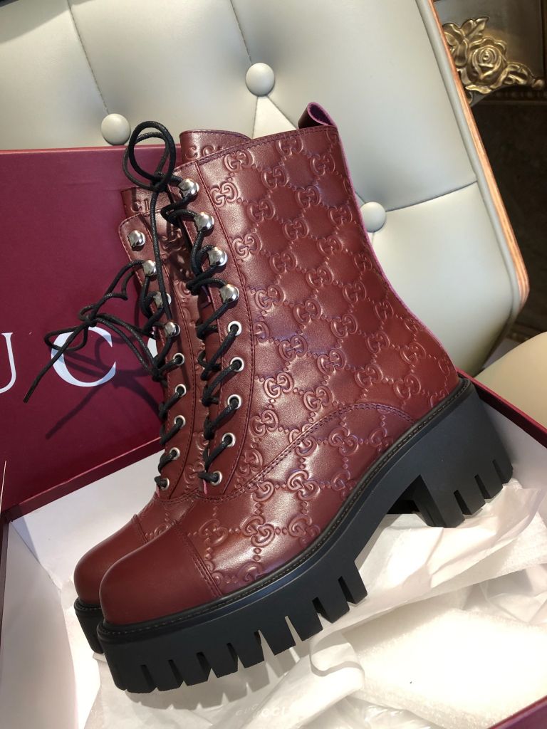BOOT NỮ GUCC* DA IN MONOGRAM GG DÁNG RIDER CỔ CAO, ĐẾ LUG DÀY NÂNG CHIỀU CAO 2350k (HÀNG ORDER QUỐC TẾ)