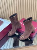 Tạo điểm nhấn thanh lịch cho mọi outfit hiện đại với mẫu boot cổ ngắn cao gót da lộn nâu trầm, tô điểm chi tiết Horsebit kim loại – biểu tượng tinh tế đã làm nên DNA thượng lưu của thương hiệu.