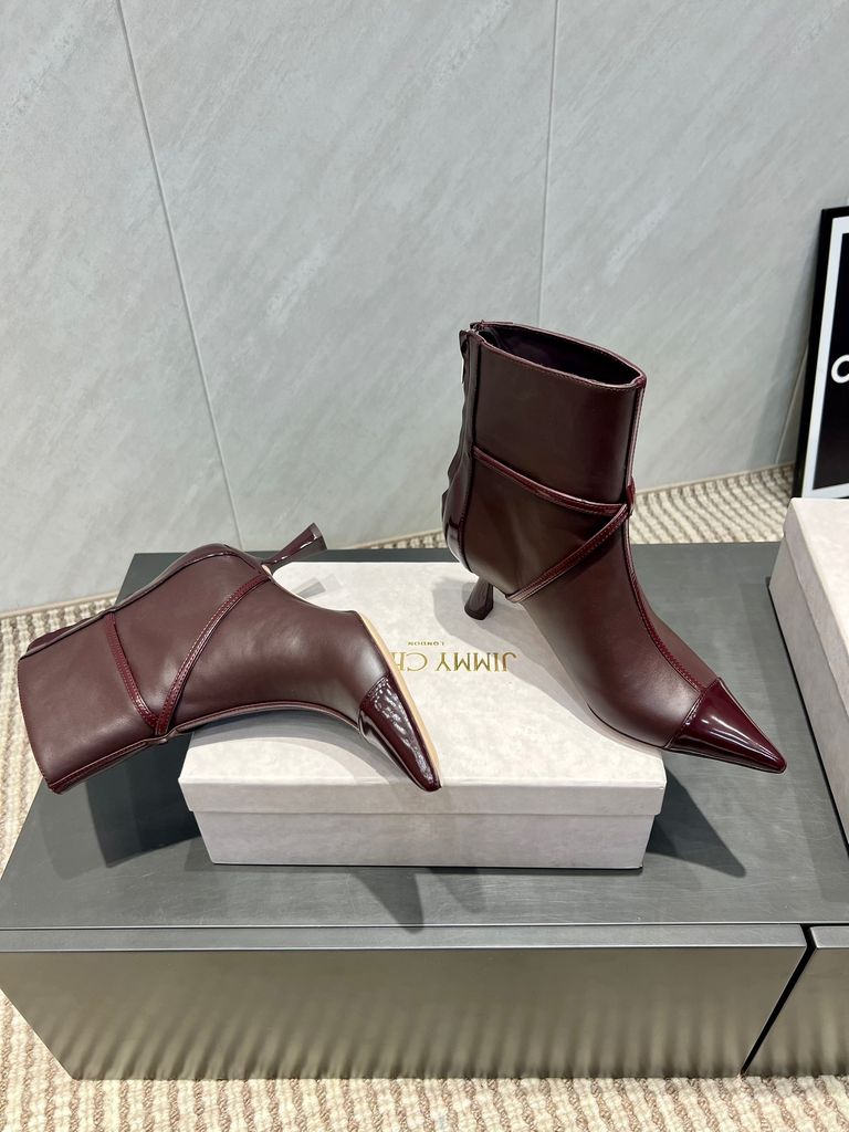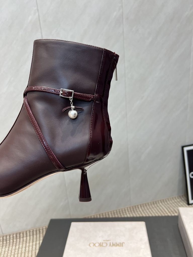 BOOT NỮ JIMC MŨI NHỌN DA NÂU ĐỎ GÓT THANH DÂY XÍCH SAU* 2200k (HÀNG ORDER QUỐC TẾ)