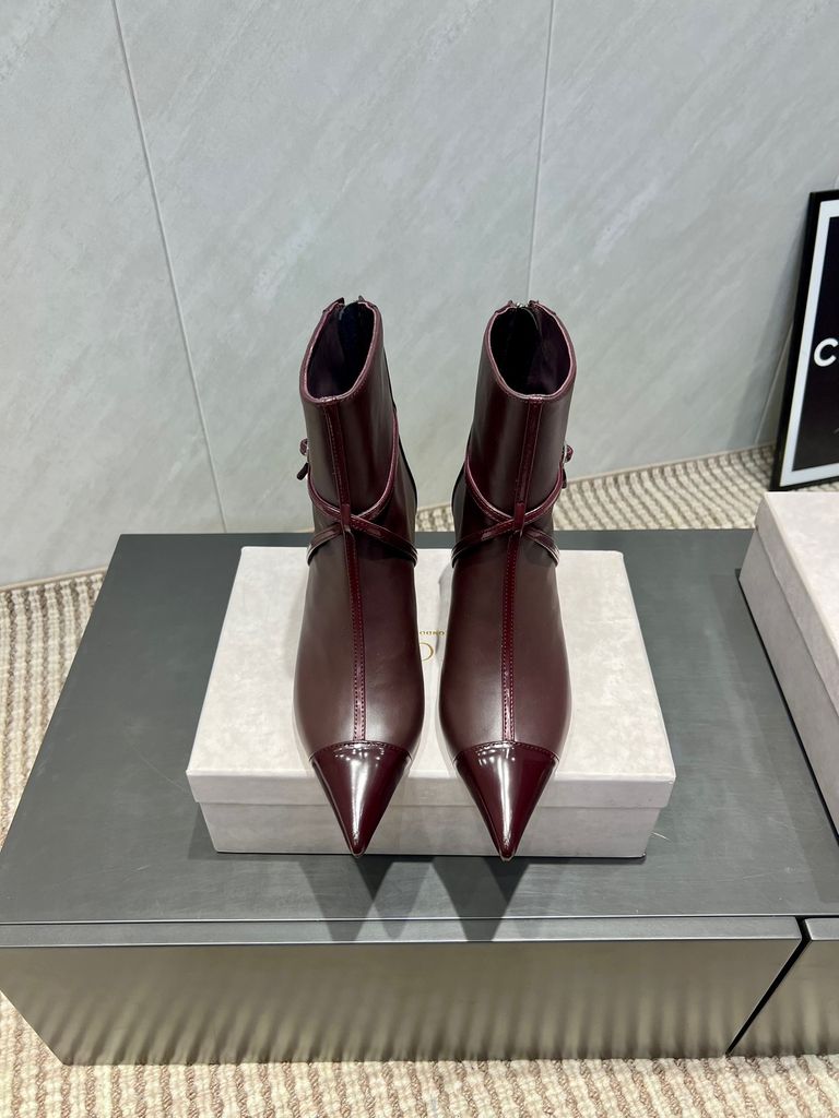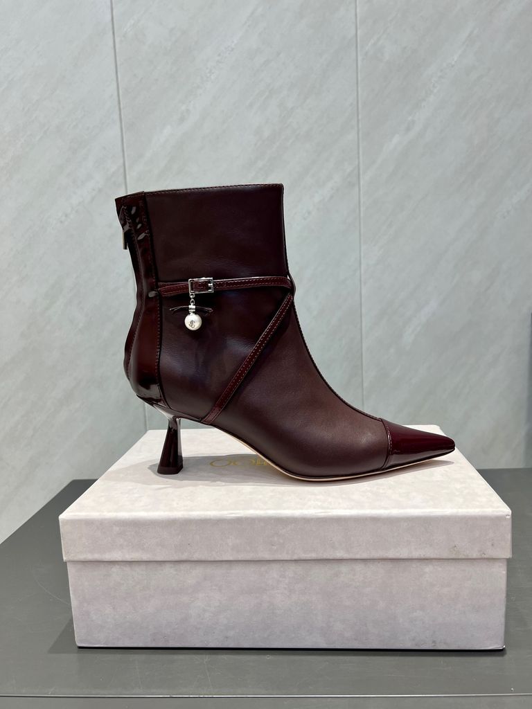 Đôi boot cổ ngắn tông nâu đỏ rượu vang, mũi nhọn thời thượng cùng gót cao vừa phải tạo cảm giác chân thon dài, nâng vẻ sang trọng ngay khi mang lên chân.