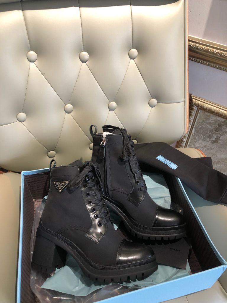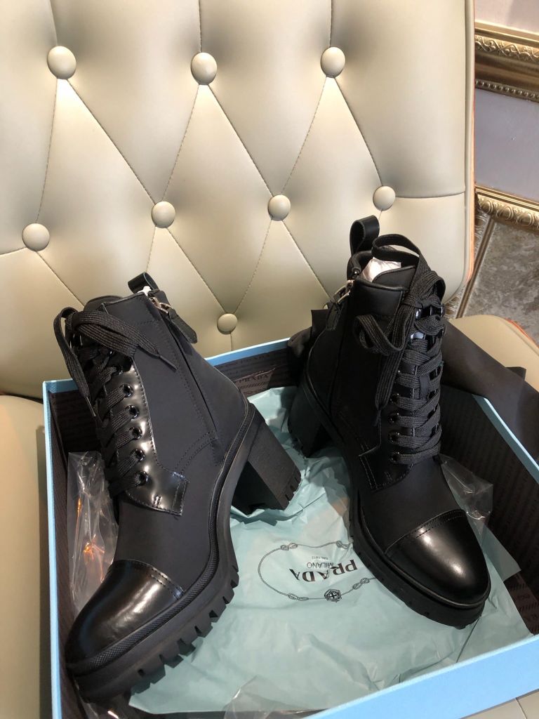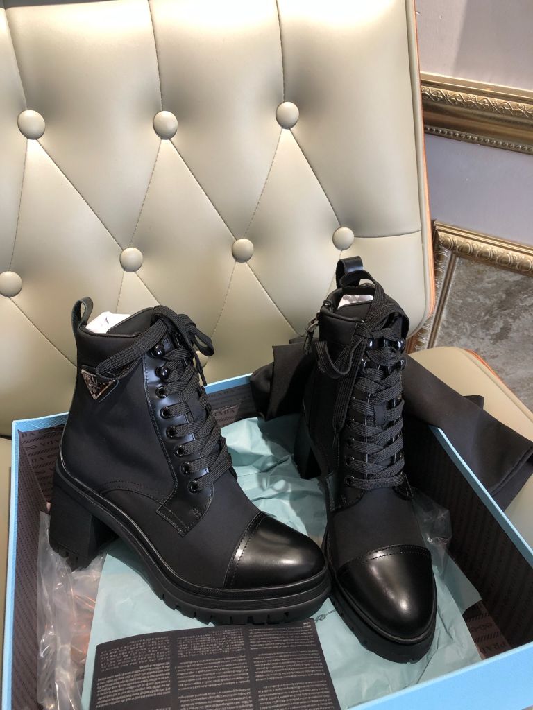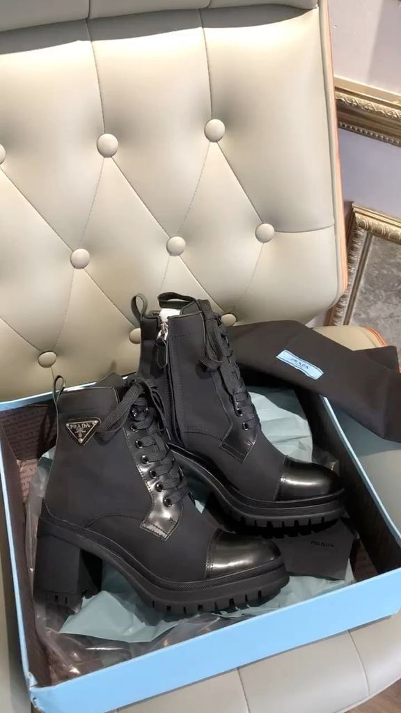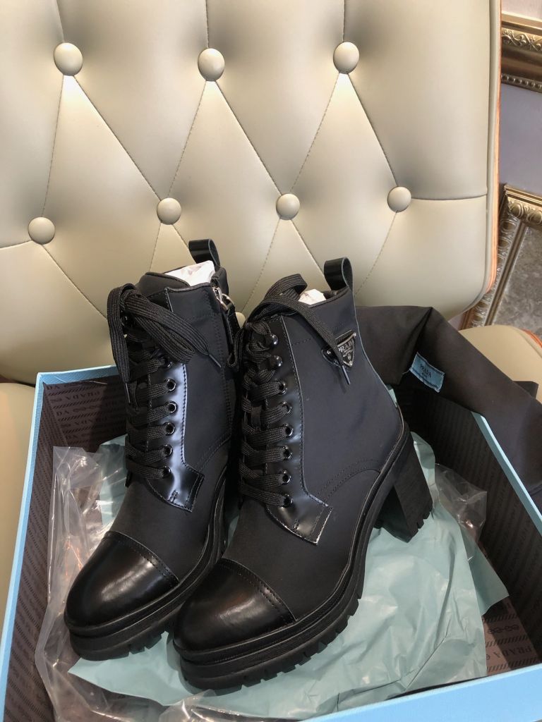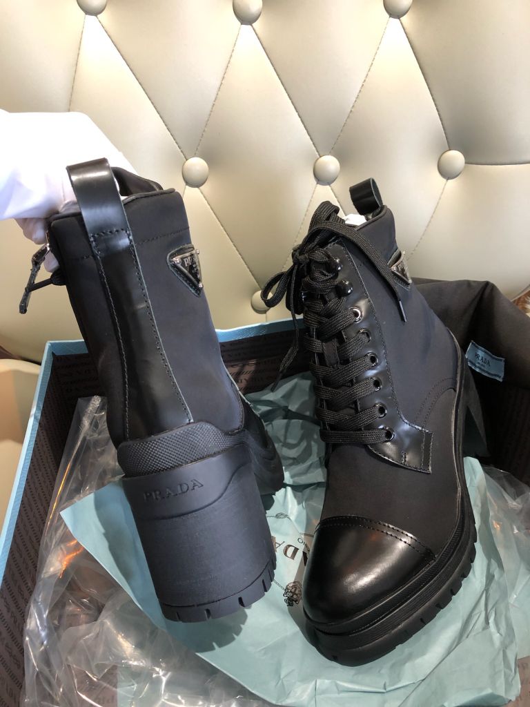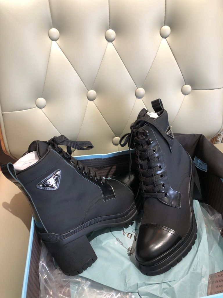 BOOT NỮ PRAD PHỐI VẢI DA GÓT 5CM ĐEN* 2050k (HÀNG ORDER QUỐC TẾ)