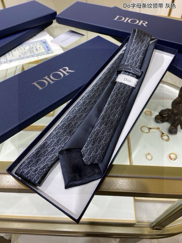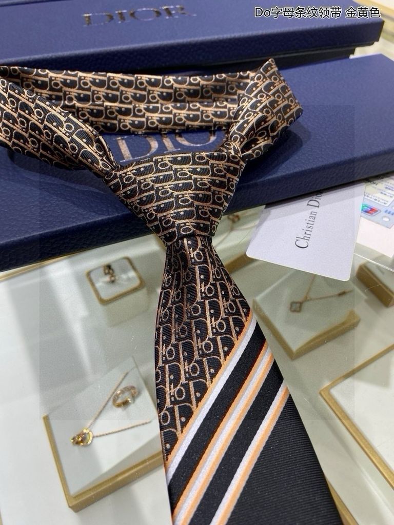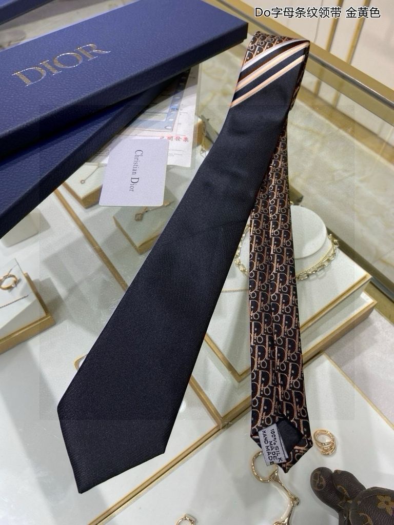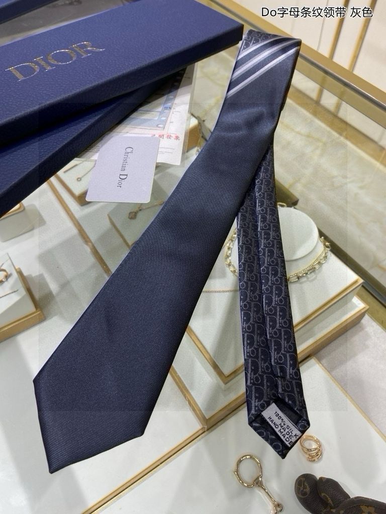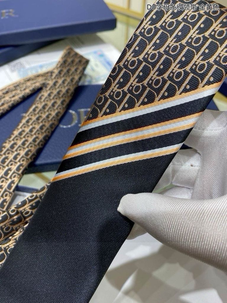 CÀ VẠT NAM Di*or* – LỤA JACQUARD MONOGRAM NAVY PHỐI SỌC THANH LỊCH 680k