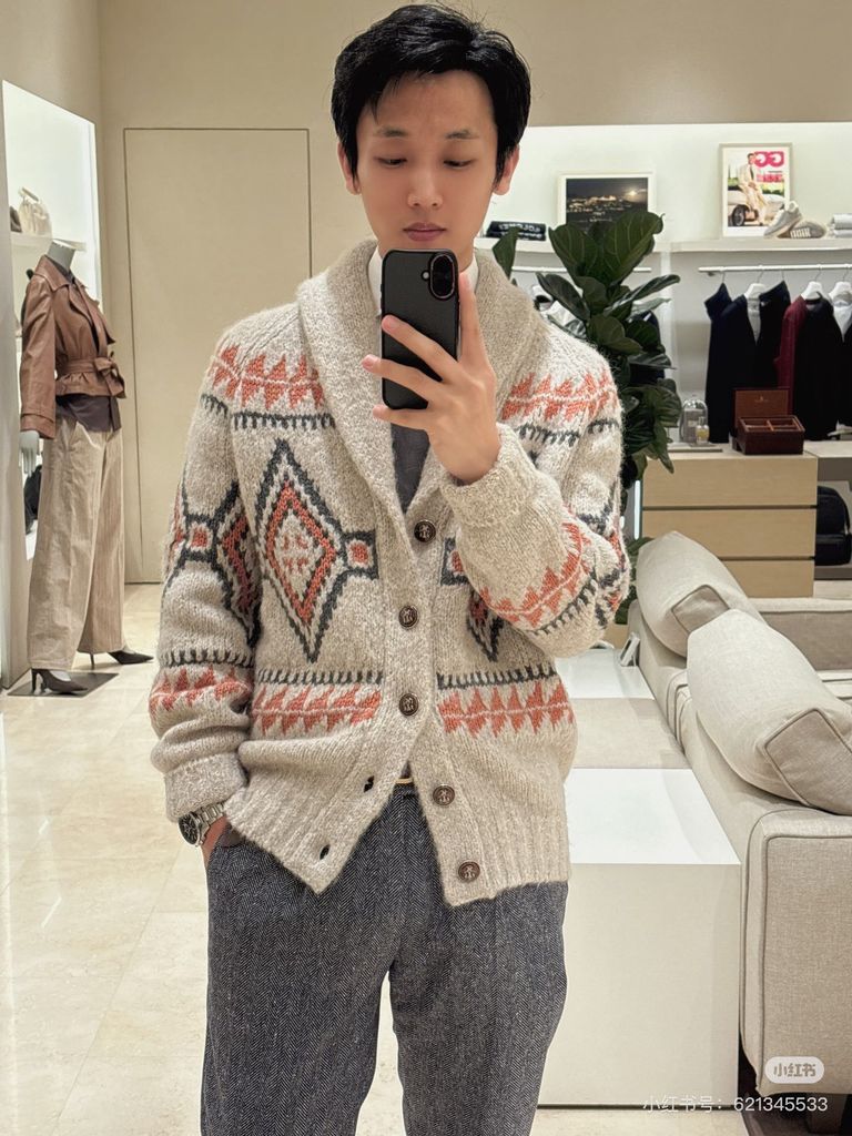 CARDIGAN LEN NAM BC HOẠ TIẾT JACQUARD HÌNH HỌC CỔ CHOÀNG SANG TRỌNG – HÀNG XỊN ĐỘC BẢN, SỐ LƯỢNG GIỚI HẠN (HÀNG ORDER QUỐC TẾ)