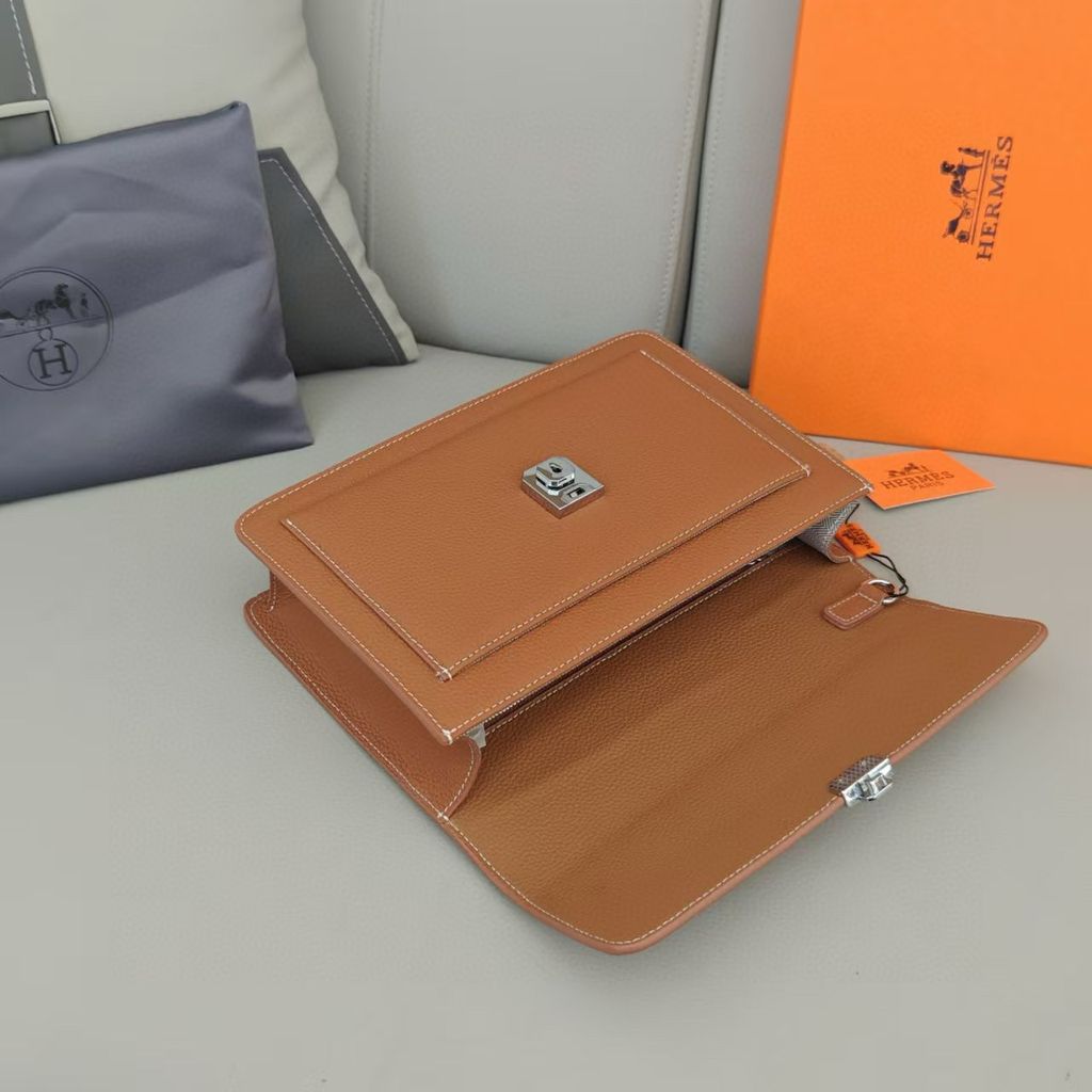 • Phom top-handle gọn gàng, nắp gập trang nhã; khóa kim loại tông vàng là điểm nhấn thanh lịch.