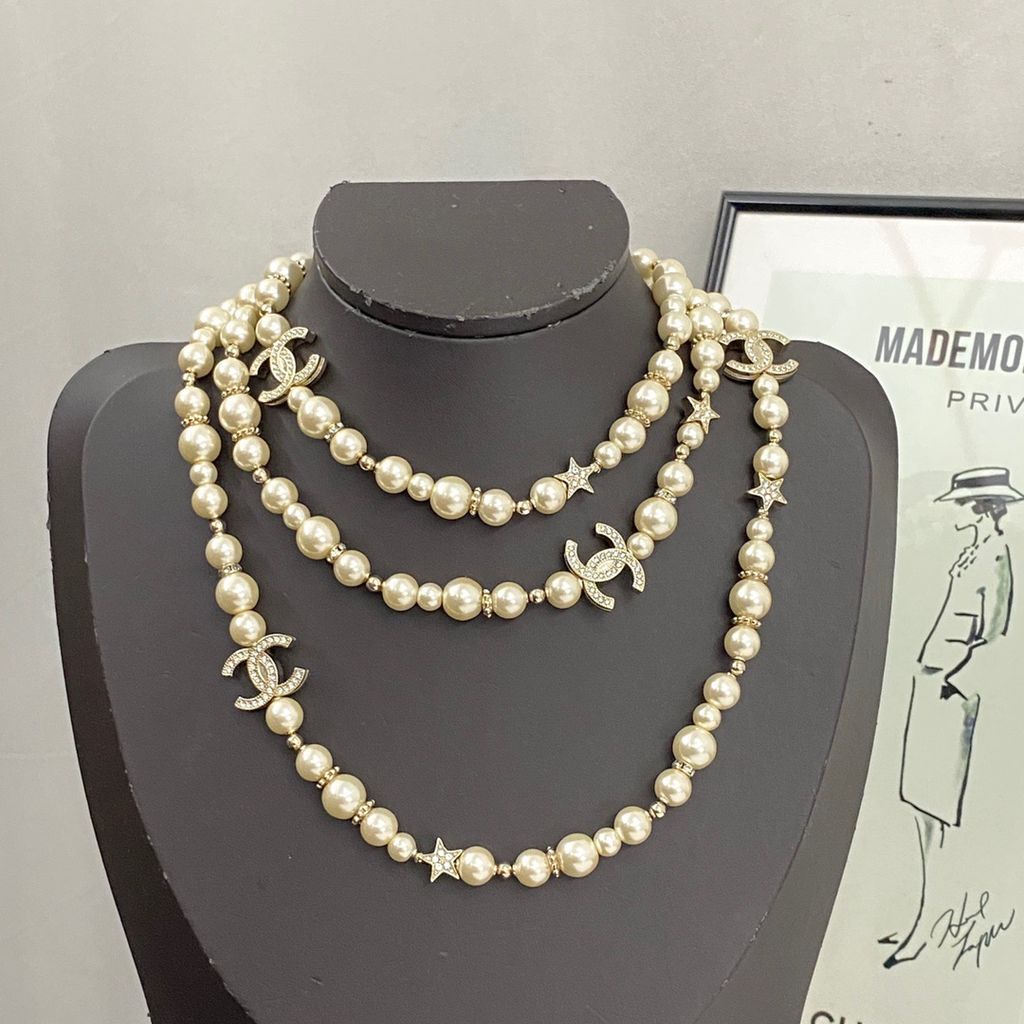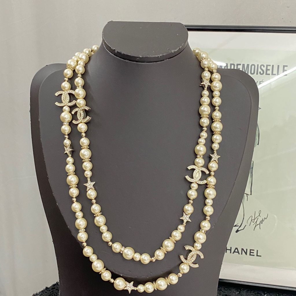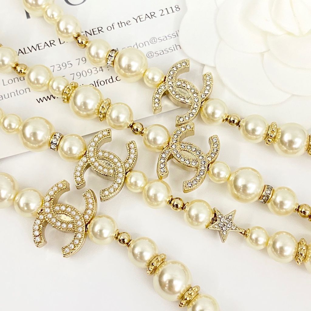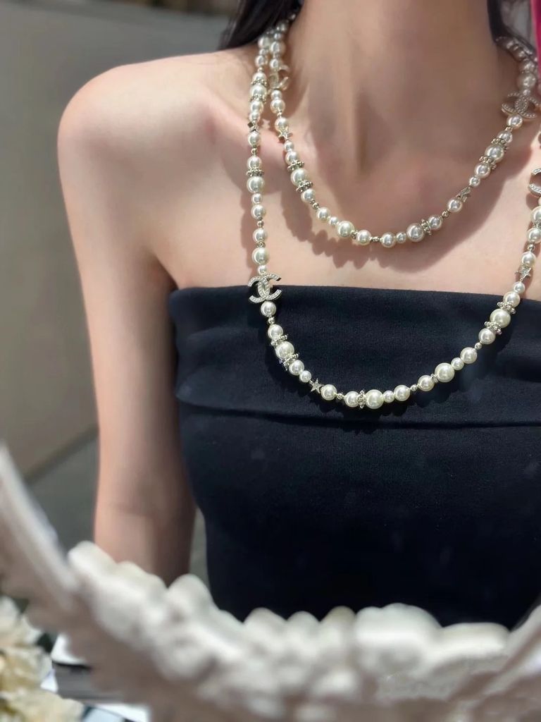DÂY CHUYỀN NỮ CHAN* NGỌC TRAI ĐA TẦNG LOGO C ĐÍNH ĐÁ 1300k (HÀNG ORDER QUỐC TẾ)