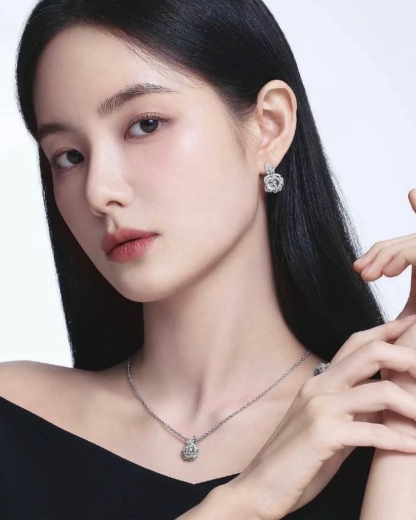 • Đính đá trắng li ti trên từng “cánh hoa”, bắt sáng mạnh, lấp lánh ở mọi góc nhìn.