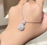 • Mặt dây hình bông hồng đơn đang nở, xoắn uốn mềm mại, tạo hiệu ứng 3D như một đóa hồng nhỏ đeo trên cổ.