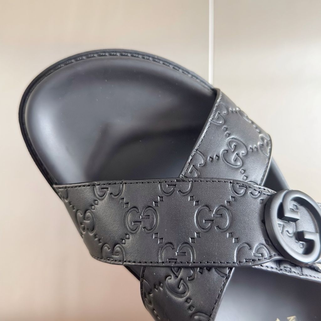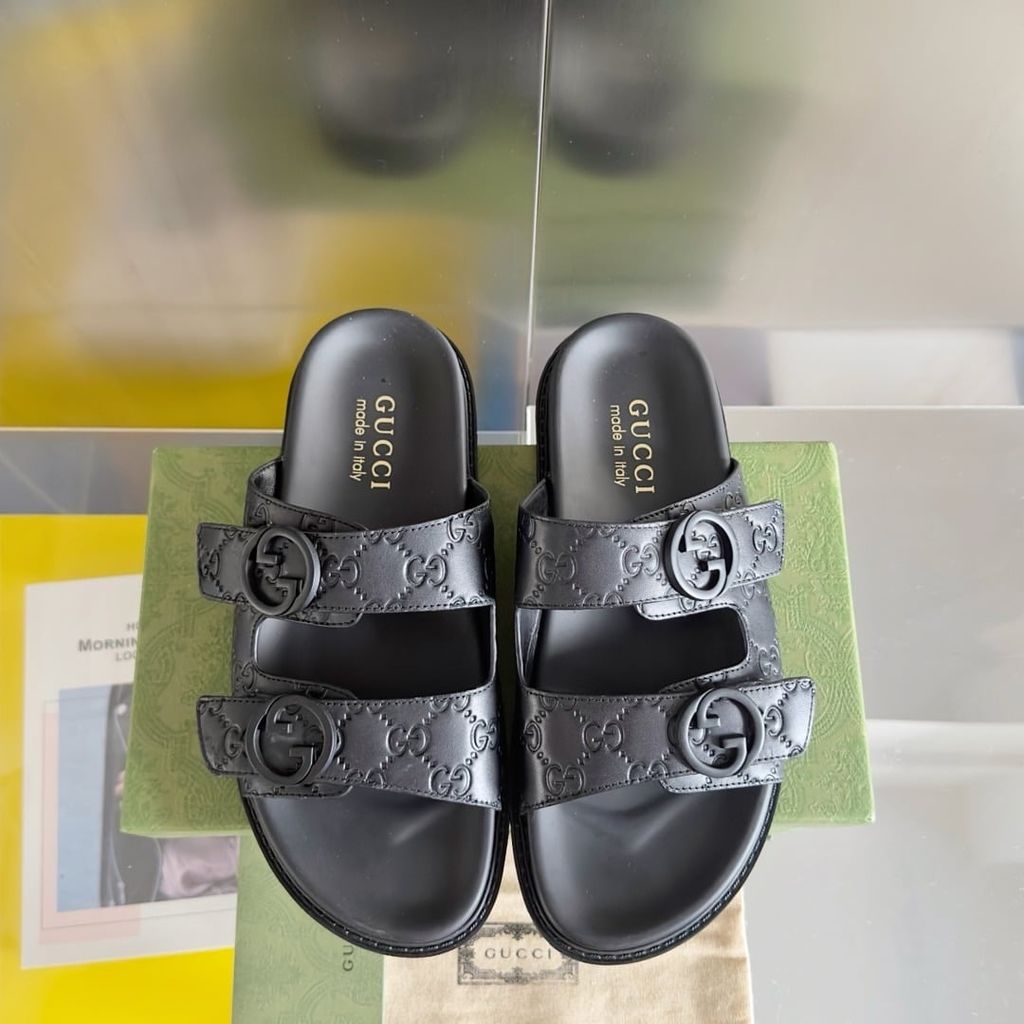 Dép nam GUCC* quai da bò dập nổi hoạ tiết Logo đẹp cao cấp 1150k
