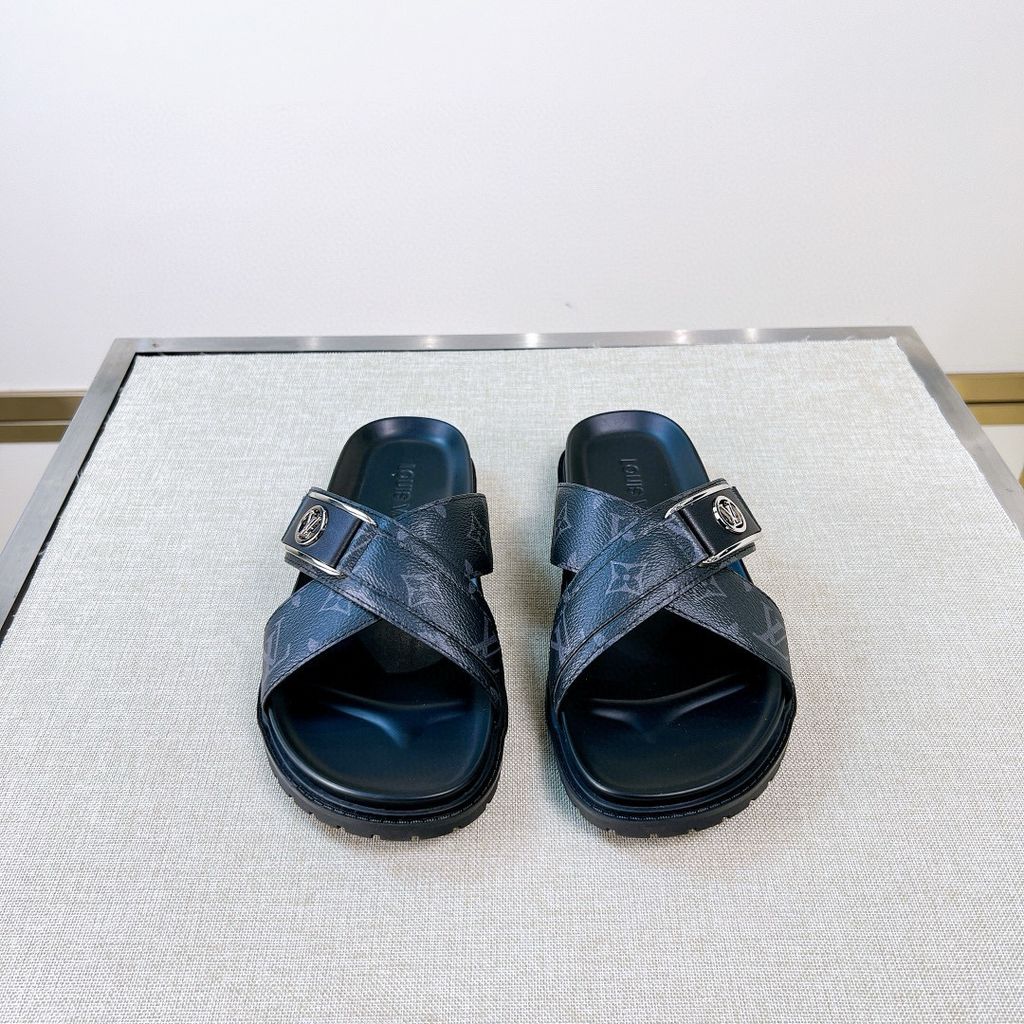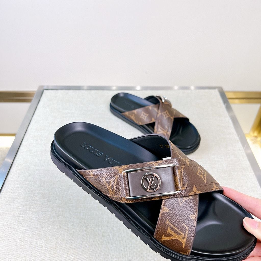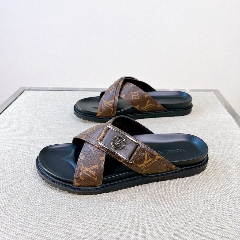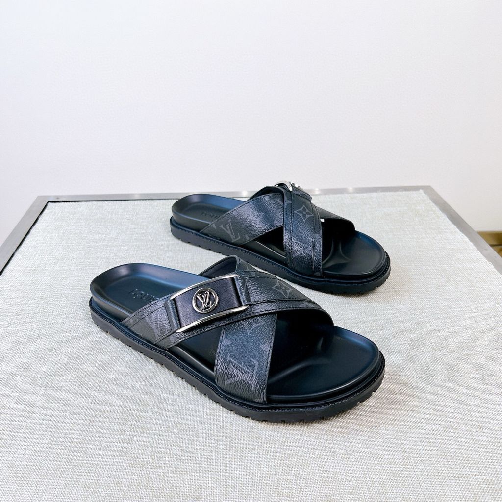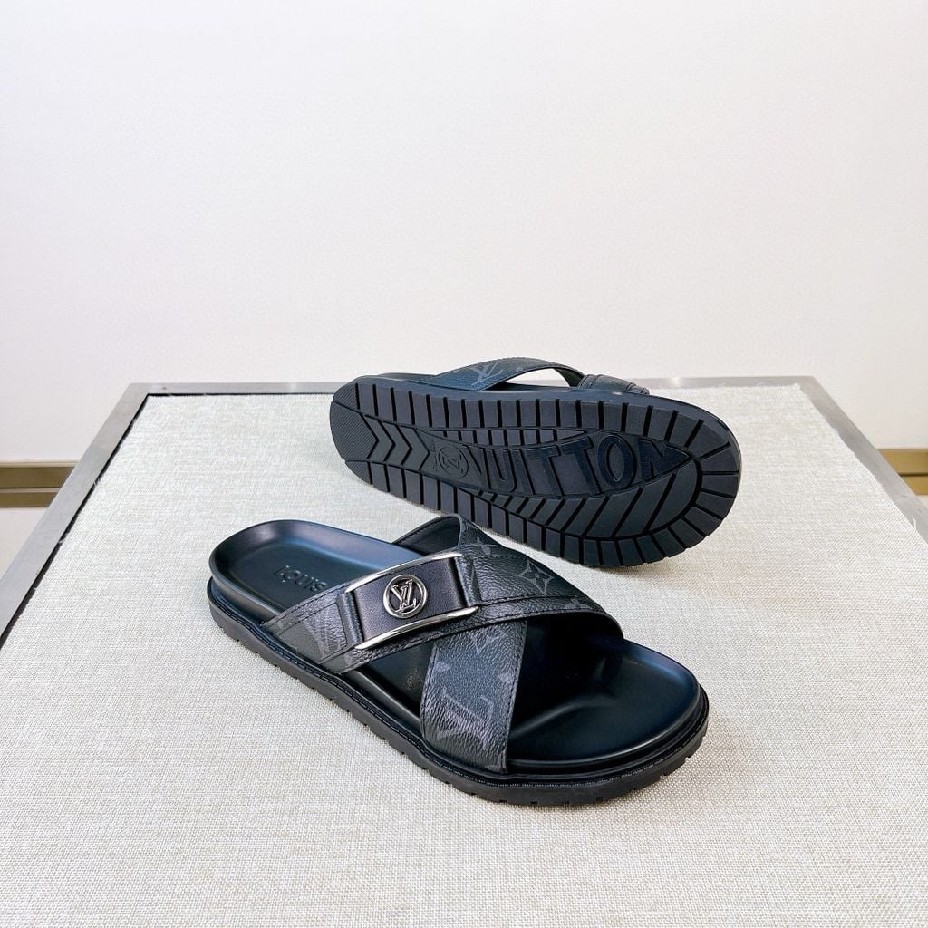 Dép nam L*V quai hoạ tiết Monogram đan chéo cao cấp 1800k
