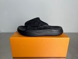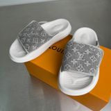 • Thiết kế dép một quai bản rộng, in họa tiết Mini Monogram tinh tế, tạo điểm nhấn nhận diện thương hiệu ngay từ cái nhìn đầu tiên.