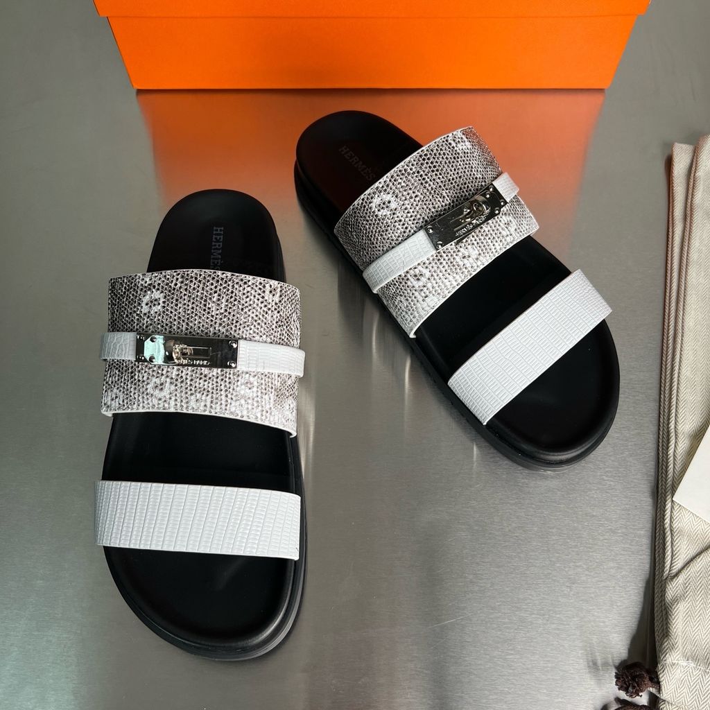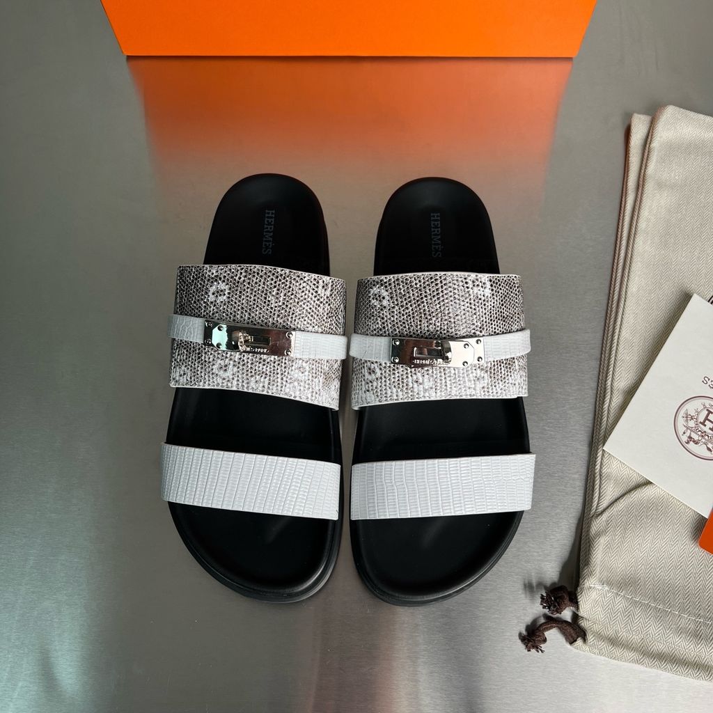Dép nam nữ Herme* quai vân da thằn lằn khóa bạc mẫu mới cực đẹp và chất VIP 1:1 Chất lượng hàng đầu 2150k