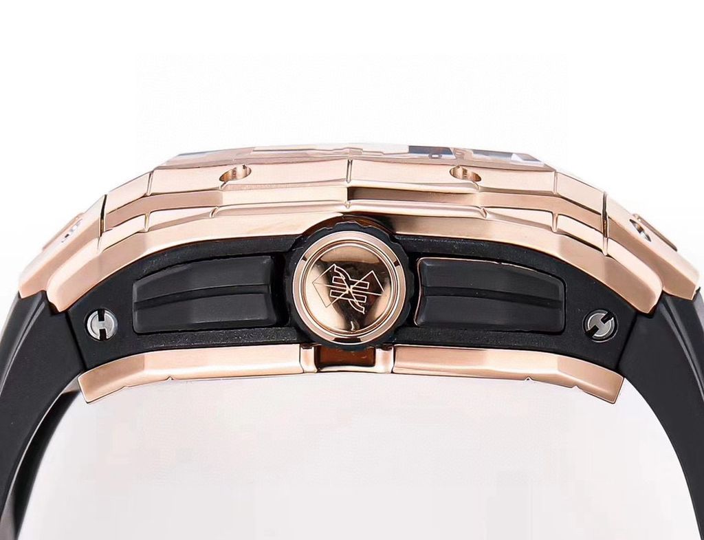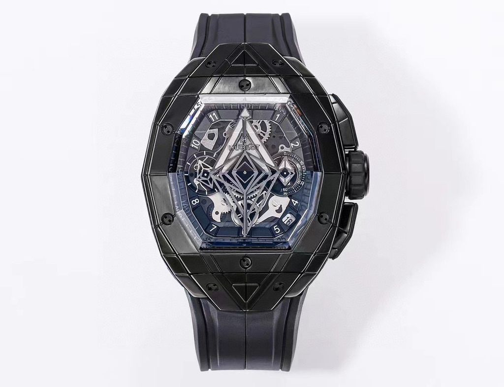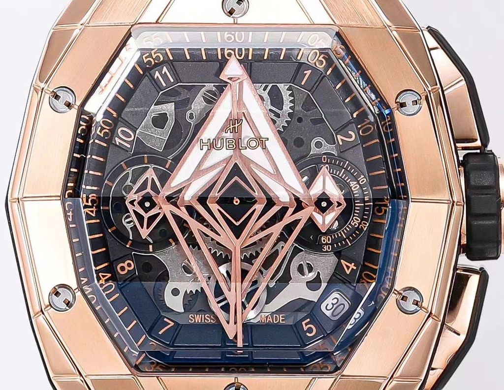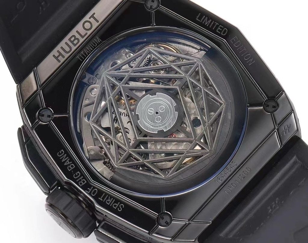 Từ vỏ đến viền, các họa tiết hình xăm hình học xen kẽ và chồng lên nhau, thể hiện sức hấp dẫn lạ thường của nghệ thuật xăm hình. Trên mặt số sapphire, qua các kim đĩa, bạn có thể đánh giá cao vẻ đẹp cơ học của bộ chuyển động bấm giờ khung xương tự lên dây HUB4700. Các kim đĩa cũng có hình dạng hình học, đây là yếu tố thiết kế mang tính biểu tượng của chiếc đồng hồ do Hublot và Sang Bleu Tattoo Studio hợp tác.