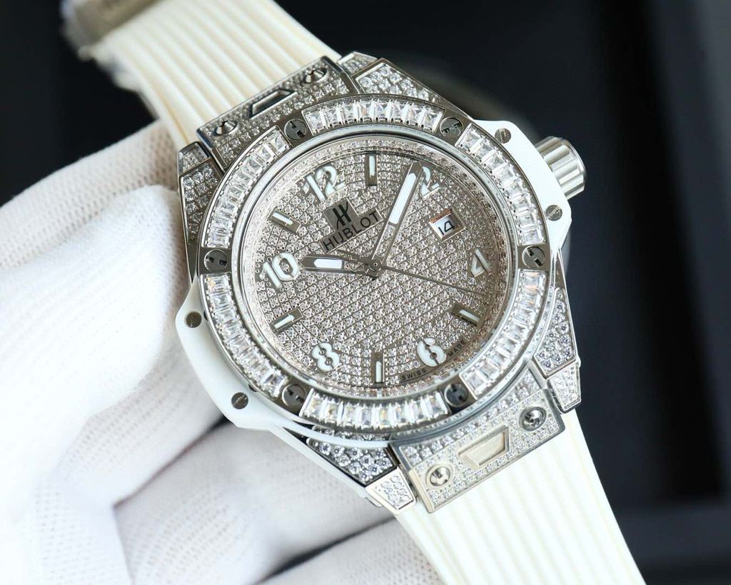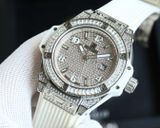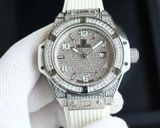 Đồng hồ nam nữ Hublot* Đồng hồ kim cương cầu vồng bằng thép không gỉ HUBLOT Big Bang có khả năng phá vỡ ranh giới truyền thống và tích hợp hài hòa các chất liệu khác nhau thành một. Đồng hồ kết hợp tinh hoa của đồng hồ và trang sức, đồng thời sử dụng đồng hồ để khơi dậy cảm giác tự do trong phong cách thời trang. Đồng hồ pavé màu trắng kế thừa cá tính đặc trưng của chiếc đồng hồ Big Bang mang tính biểu tượng của Hublot, thể hiện phong cách bắt mắt, dám phá vỡ các quy tắc. Đồng hồ sử dụng khung bezel cố định, được đính những viên kim cương rực rỡ và phát nhịp điệu thời gian trên cổ tay. Chân thực thuần khiết - thể hiện con người thật không sợ hãi và dám yêu! Máy tự động nhập khẩu hoàn toàn tự động 100