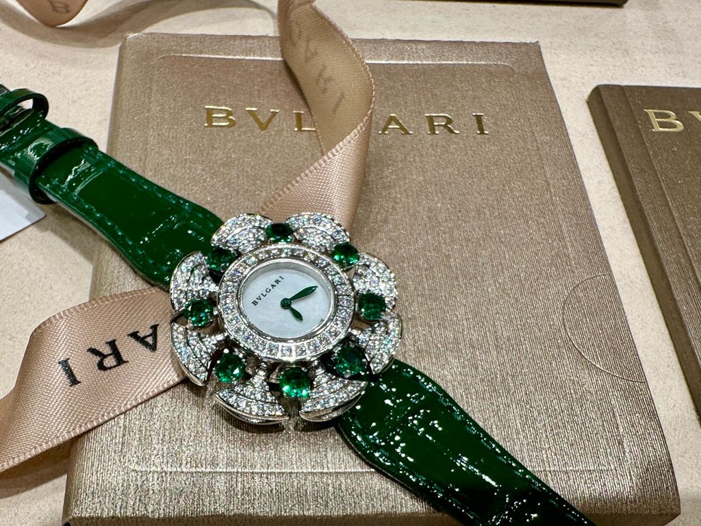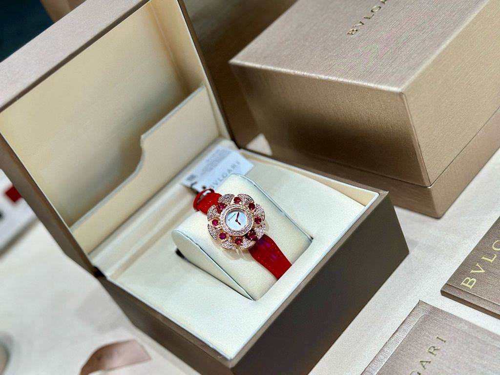 Đồng hồ nữ Bvlgari* dây da mặt bông hoa kim cương cực đẹp sang quyến rũ VIP 1:1 chất lượng hàng đầu 8800k