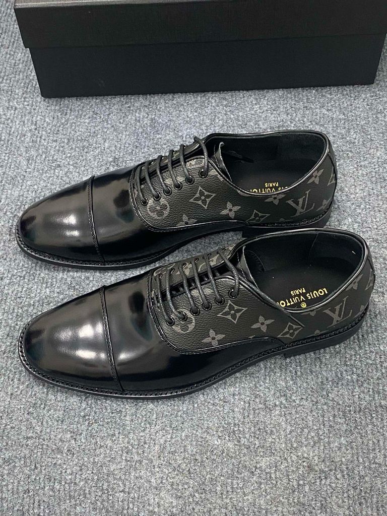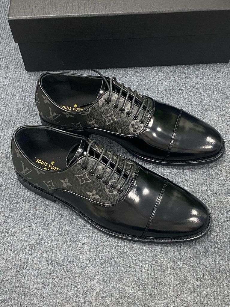 Giày âu L*V da bóng mờ gót phối Monogram xám cực đẹp lịch lãm VIP 1:1 2600k
