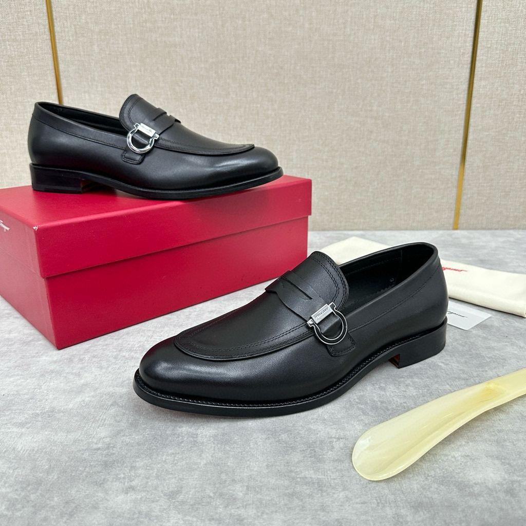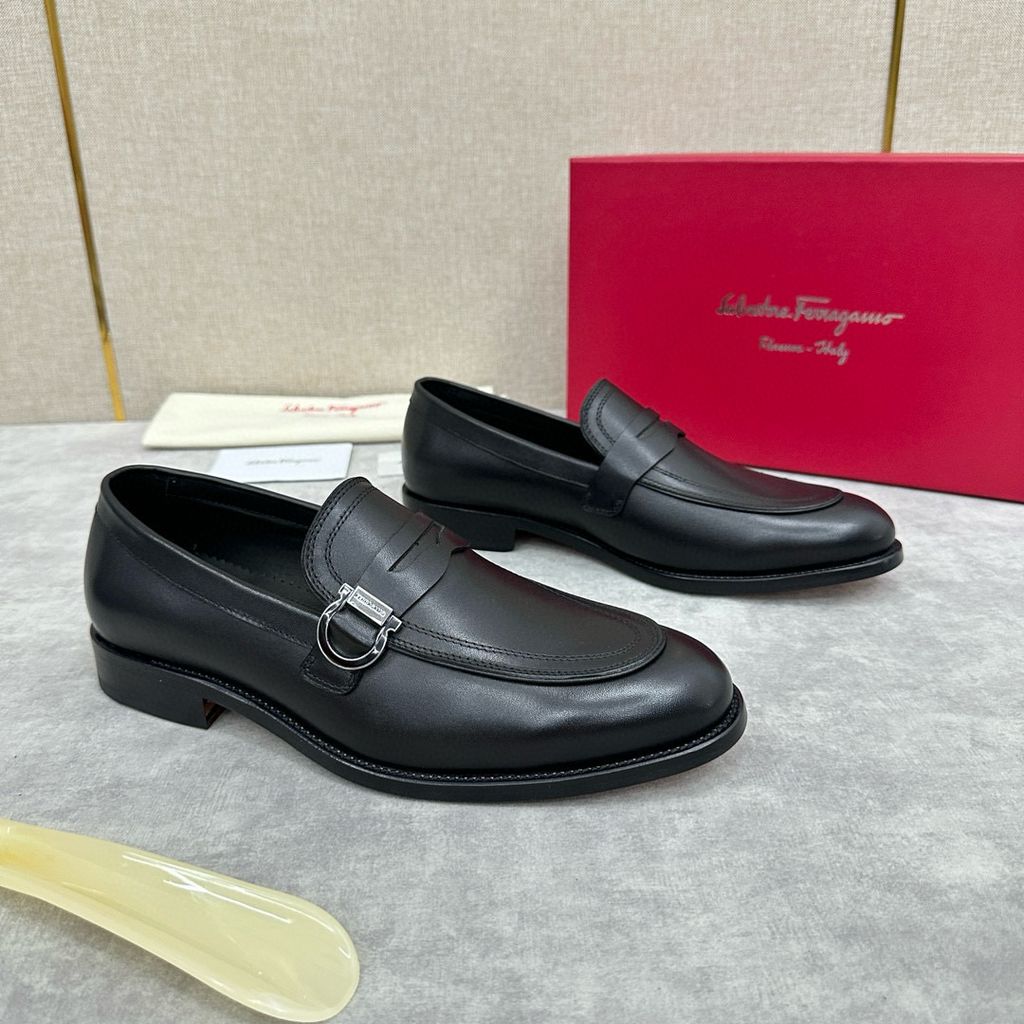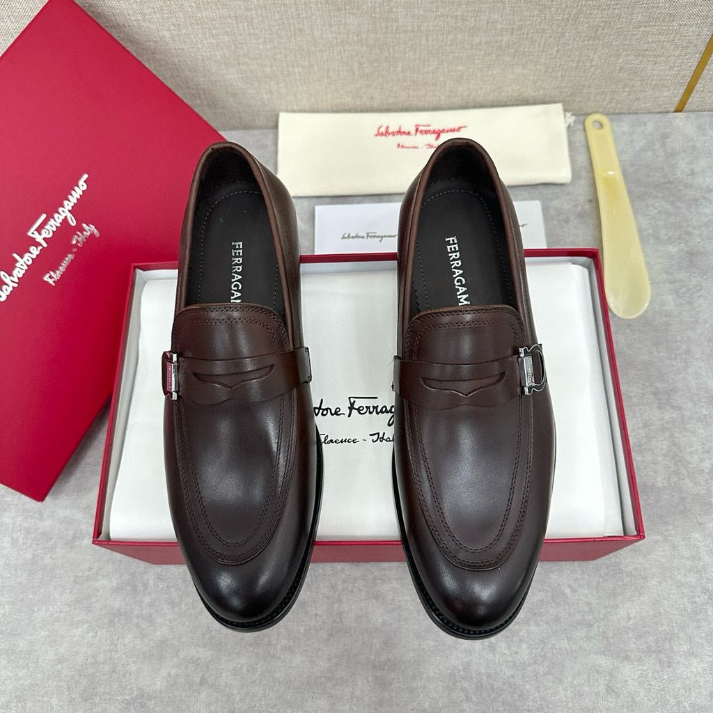 có thể mang theo thông thường hoặc trang trọng. Hình dáng cổ điển của giày lười moccasin thể hiện nét quyến rũ thời trang của trang phục trang trọng và tỷ lệ được thiết kế mới hiện đại hơn. Những đôi giày lười này được làm bằng da bò/da bê mịn nhập khẩu có cạnh hở đính cườm. Phần trên được tô điểm bằng khóa Gancini hai màu vàng và bạc đúc riêng, cùng các chi tiết khâu đôi tăng thêm nét quyến rũ thời trang. Áp dụng cấu trúc “nguyên bản” đặc biệt và trải qua nhiều công đoạn, đế gần như được làm thủ công hoàn toàn. Công nghệ xử lý độc đáo thể hiện sự khéo léo tinh tế. Đế ngoài bằng da thật , tạo cảm giác thoải mái, chống trơn trượt và chống mài mòn, hoàn hảo để mang vào. Đường khâu tay tinh tế, tay nghề tinh xảo có thể so sánh với da bê màu nguyên bản tại quầy. .Lớp lót thấm mồ hôi Phần gót còn được trang trí bằng miếng cao su giúp tăng độ bám hoàn hảo. Cỡ giày da tiêu chuẩn: 39~44 (38.45.46 có thể tùy chỉnh)