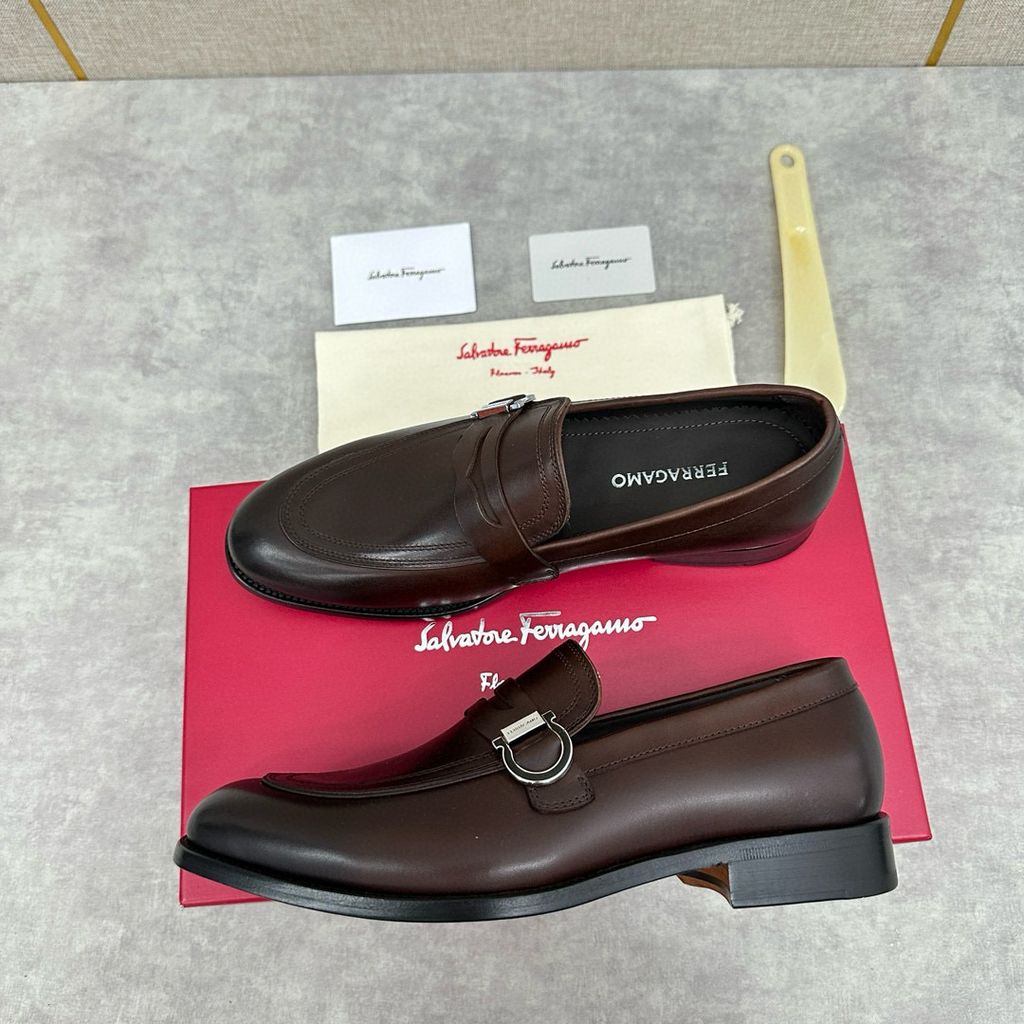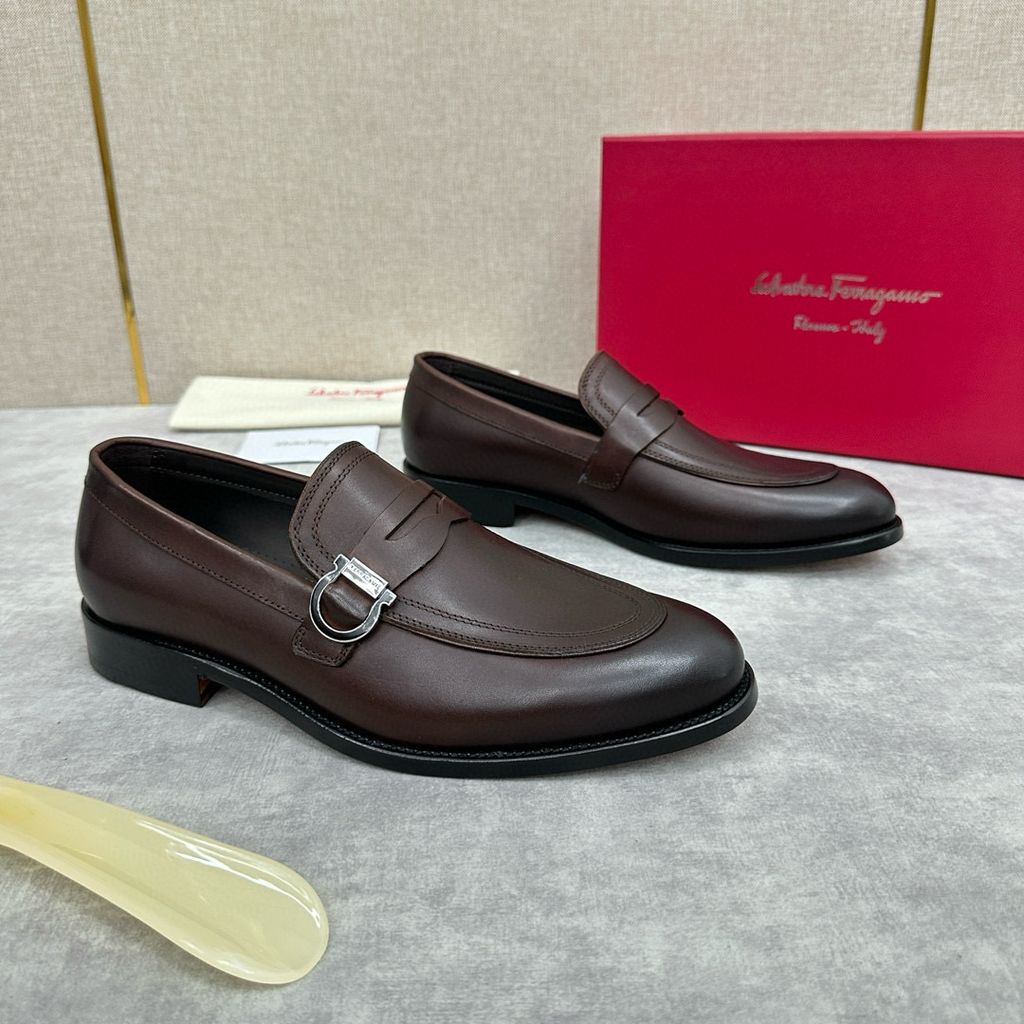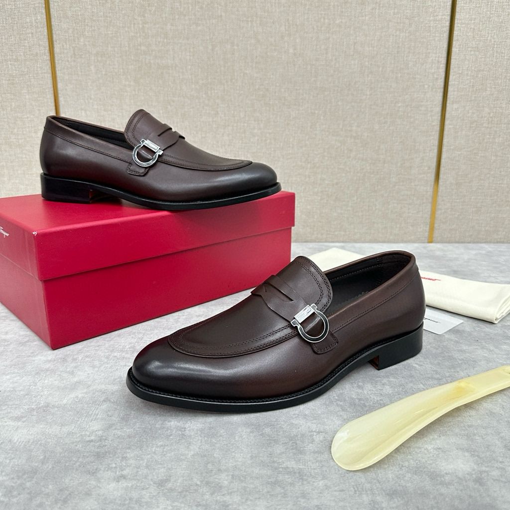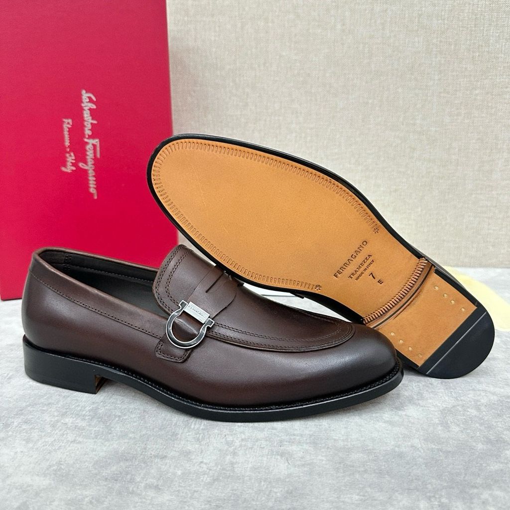 có thể mang theo thông thường hoặc trang trọng. Hình dáng cổ điển của giày lười moccasin thể hiện nét quyến rũ thời trang của trang phục trang trọng và tỷ lệ được thiết kế mới hiện đại hơn. Những đôi giày lười này được làm bằng da bò/da bê mịn nhập khẩu có cạnh hở đính cườm. Phần trên được tô điểm bằng khóa Gancini hai màu vàng và bạc đúc riêng, cùng các chi tiết khâu đôi tăng thêm nét quyến rũ thời trang. Áp dụng cấu trúc “nguyên bản” đặc biệt và trải qua nhiều công đoạn, đế gần như được làm thủ công hoàn toàn. Công nghệ xử lý độc đáo thể hiện sự khéo léo tinh tế. Đế ngoài bằng da thật , tạo cảm giác thoải mái, chống trơn trượt và chống mài mòn, hoàn hảo để mang vào. Đường khâu tay tinh tế, tay nghề tinh xảo có thể so sánh với da bê màu nguyên bản tại quầy. .Lớp lót thấm mồ hôi Phần gót còn được trang trí bằng miếng cao su giúp tăng độ bám hoàn hảo. Cỡ giày da tiêu chuẩn: 39~44 (38.45.46 có thể tùy chỉnh)