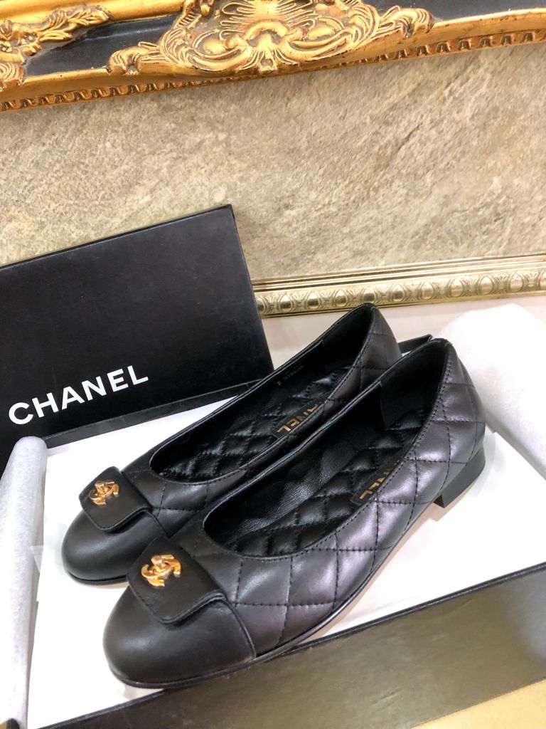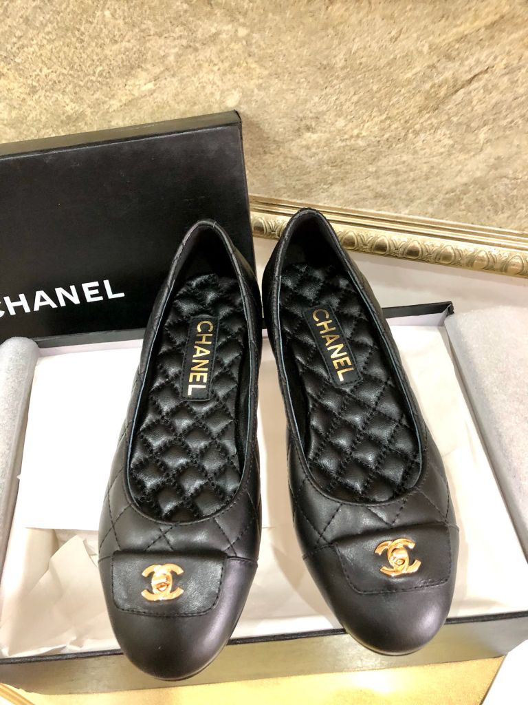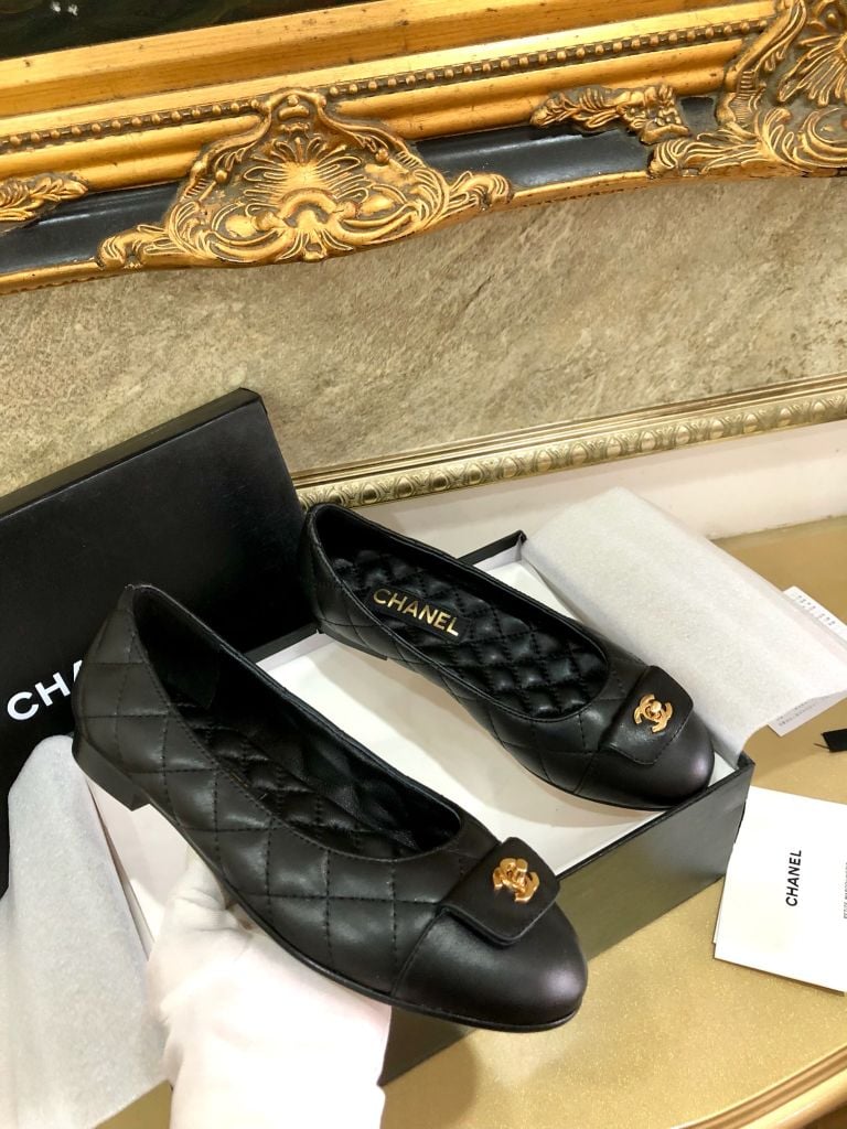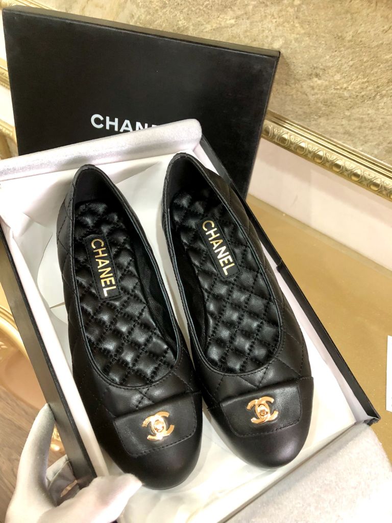 Giày múa ba lê nguyên bản cắt 1:1 Chanel Chanel mũi tròn cổ điển giày ba lê