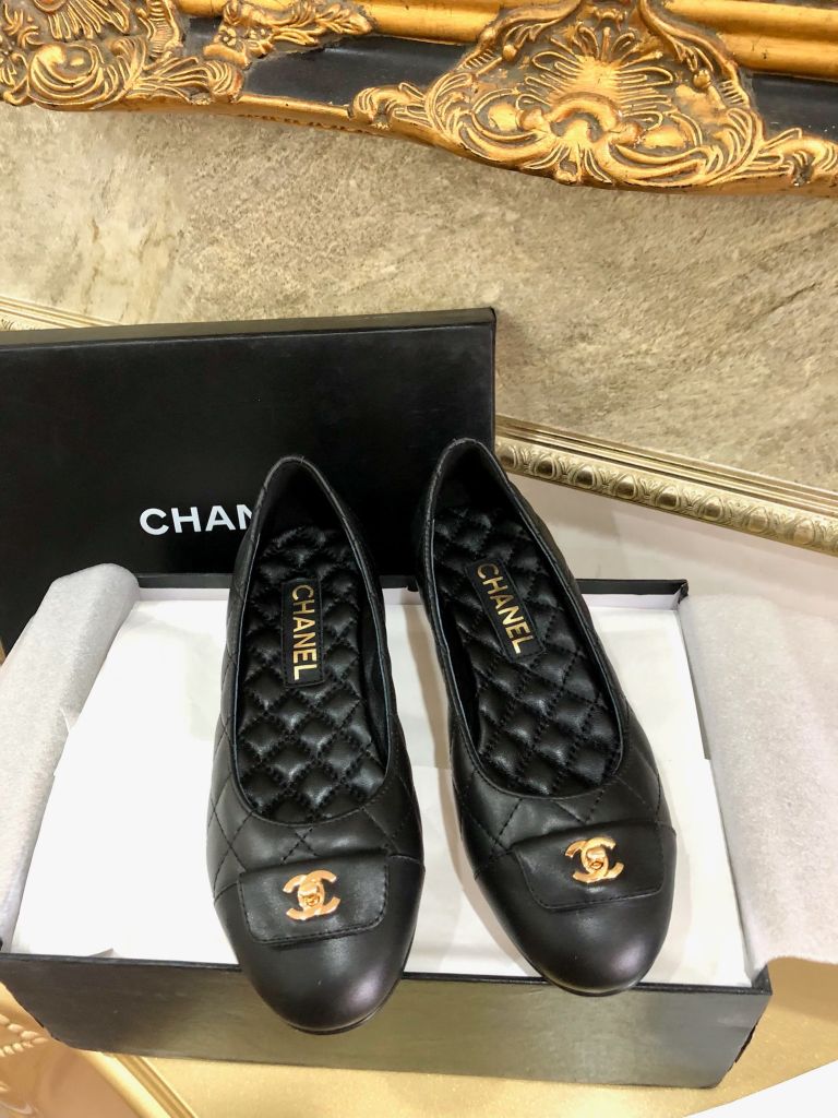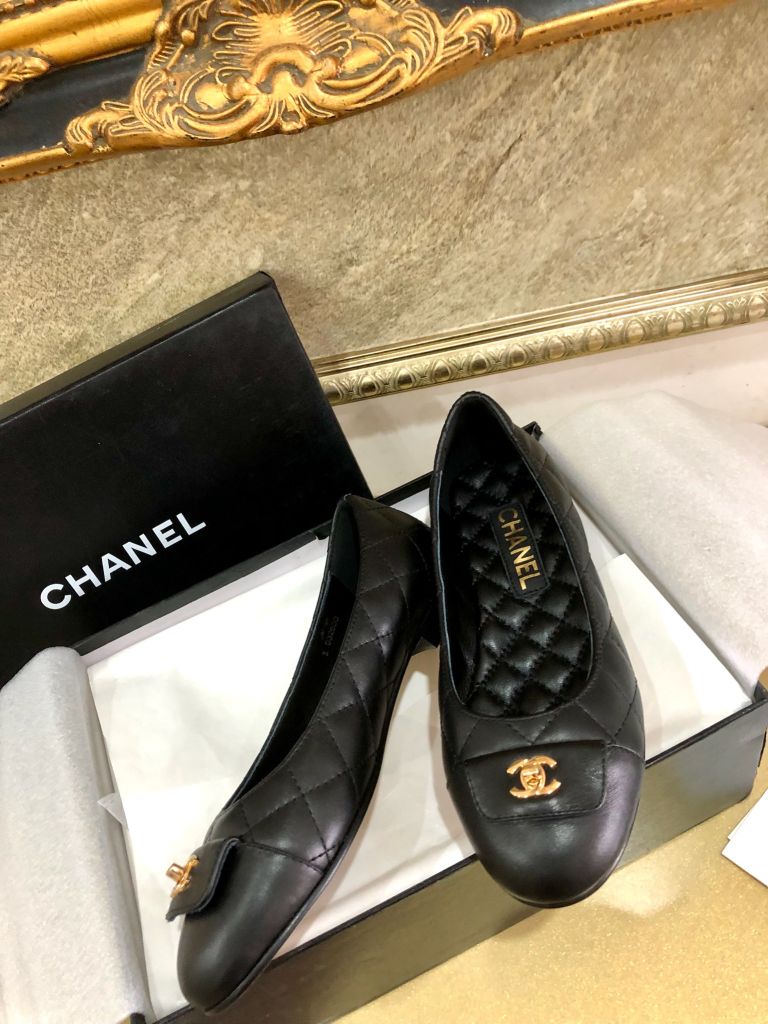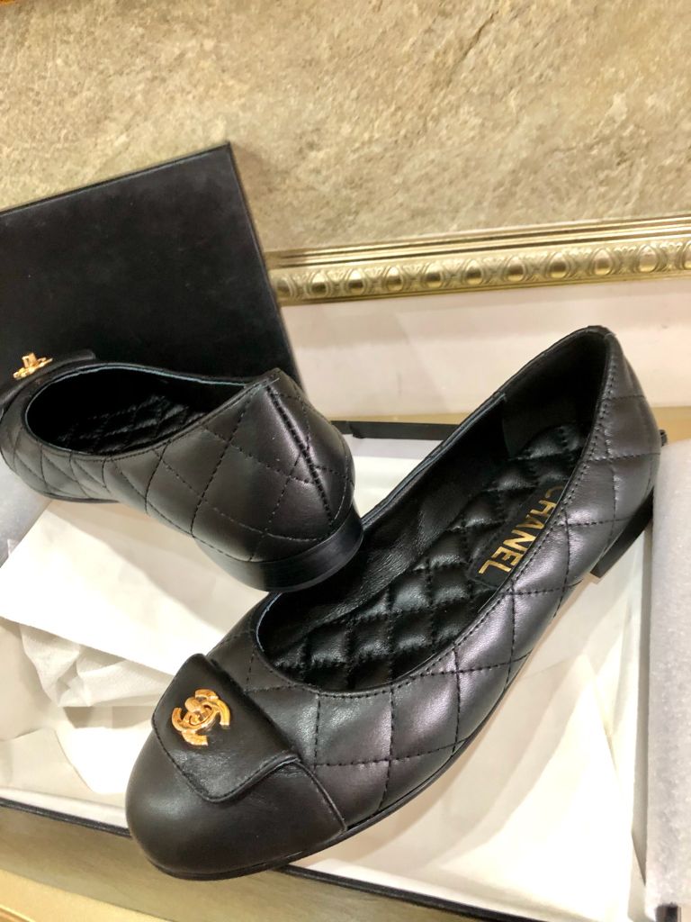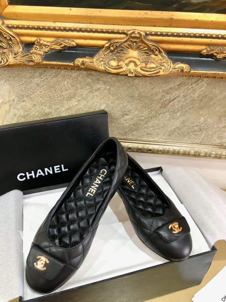 Giày múa ba lê nguyên bản cắt 1:1 Chanel Chanel mũi tròn cổ điển giày ba lê