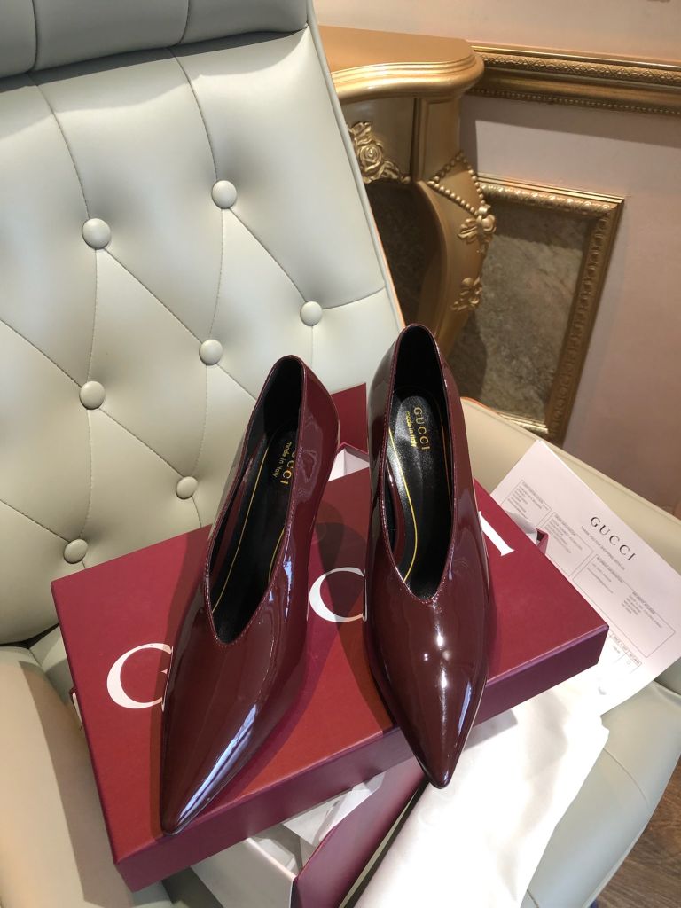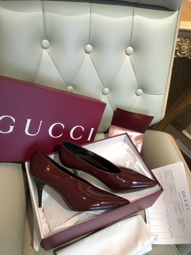 GIÀY CAO GÓT GUCC 97 SERIES MŨI NHỌN V-CUT PATENT 8.5CM 1700k (HÀNG ORDER QUỐC TẾ)