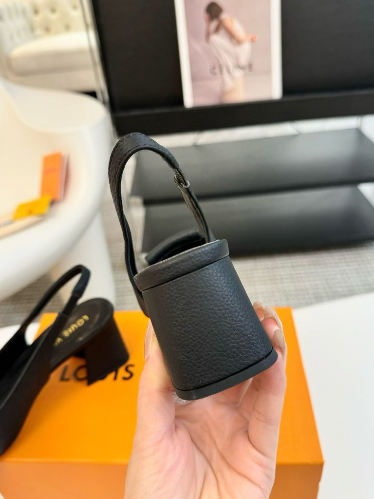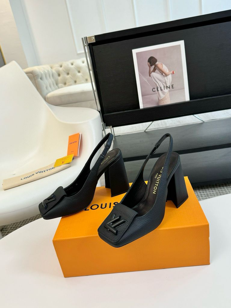 Giày cao gót L*V dáng hở gót da bò cao cấp cao 5,5cm và 9,5cm 1750k