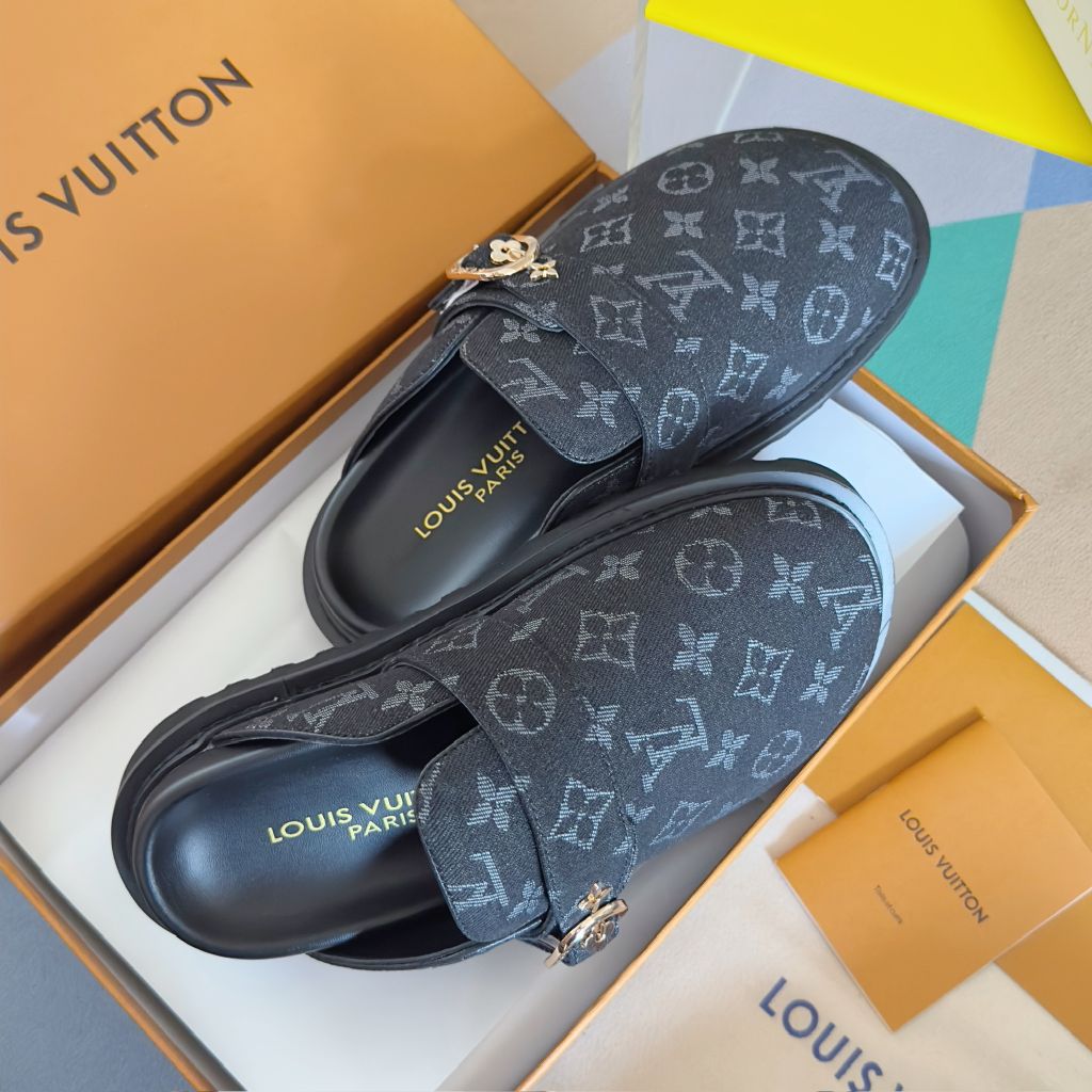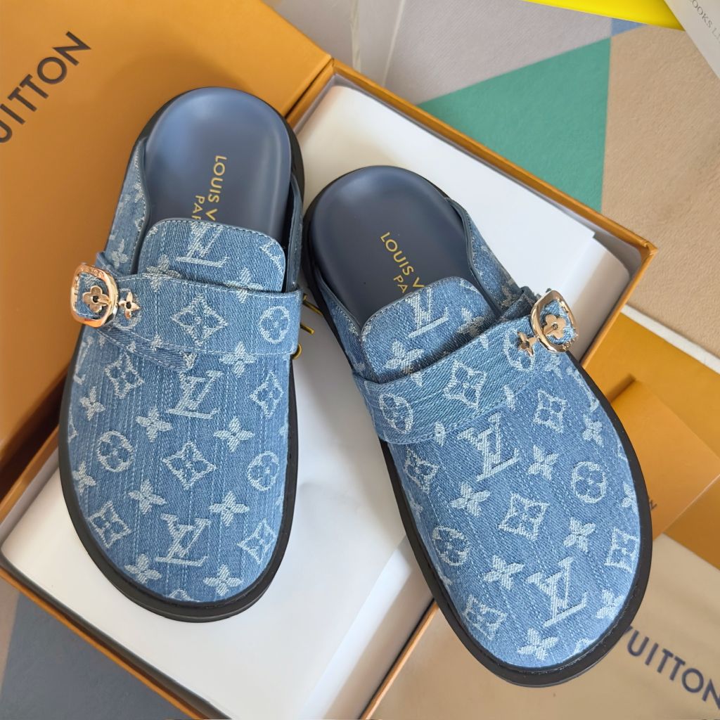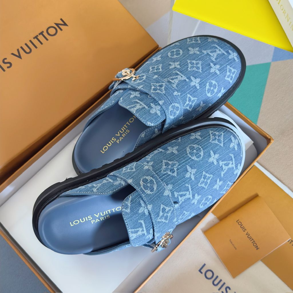 GIÀY MULE UNISEX LV* COSY COMFORT MONOGRAM XANH – ĐẾ 4CM, DÂY GẬP CHỈNH 1450k (HÀNG ORDER QUỐC TẾ)
