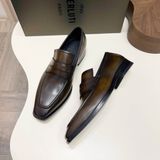 • Mở đầu: phiên bản loafer patina màu nâu ombre (cacao → espresso) lên màu bằng tay, tôn vẻ lịch lãm và chuẩn mực quý ông ngay từ ánh nhìn đầu tiên.