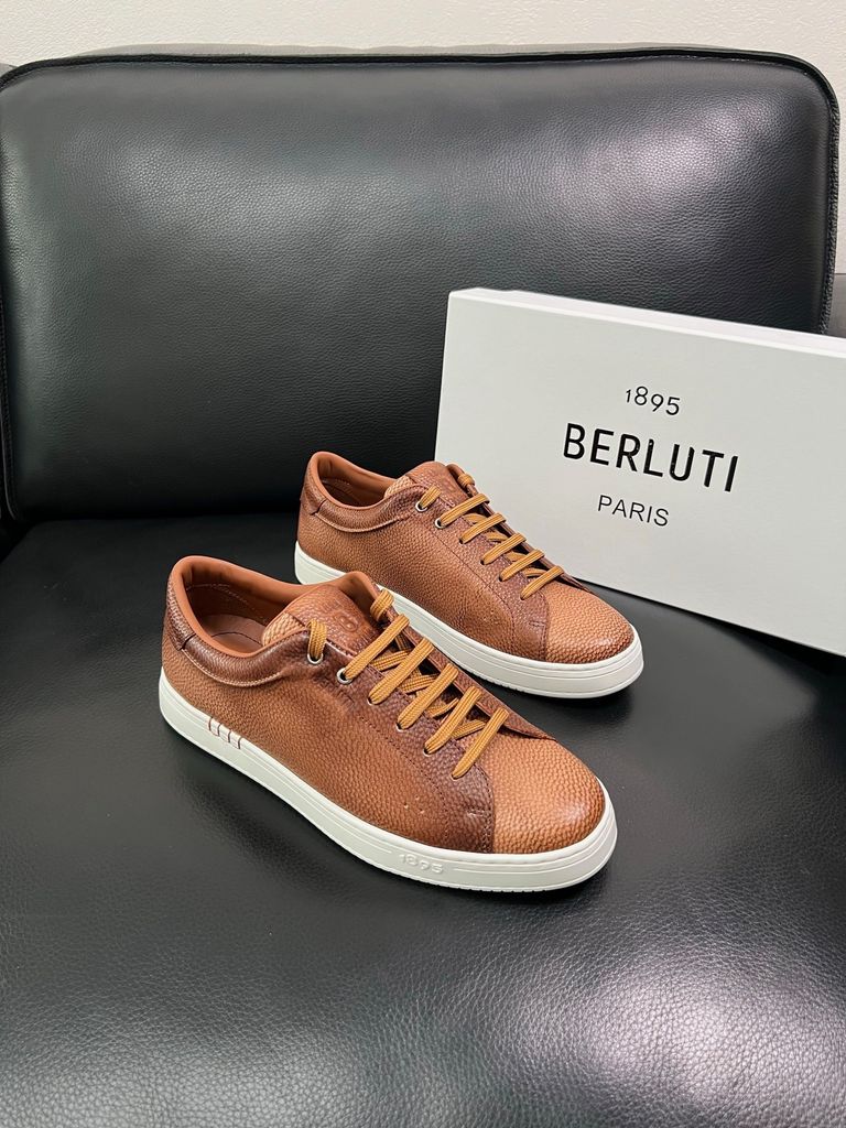GIÀY NAM BERLUTTI SNEAKER DA BÊ Ý MÀU CARAMEL – LÓT DA, ĐẾ CAO SU ÊM ÁI 2700k