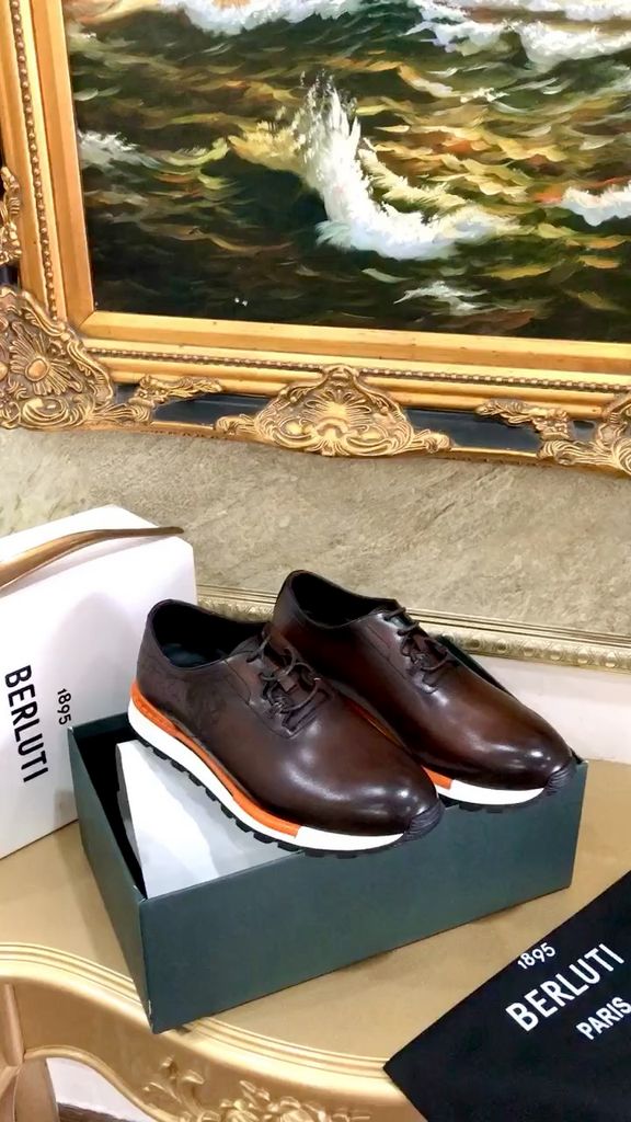 Giày nam buộc dây BERLUTI* da nhập khẩu khắc chữ đẹp VIP 1:1 Chất lượng hàng đầu 3750k