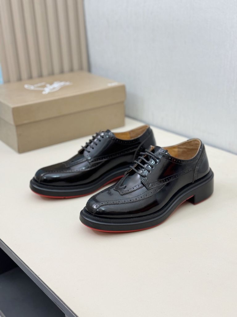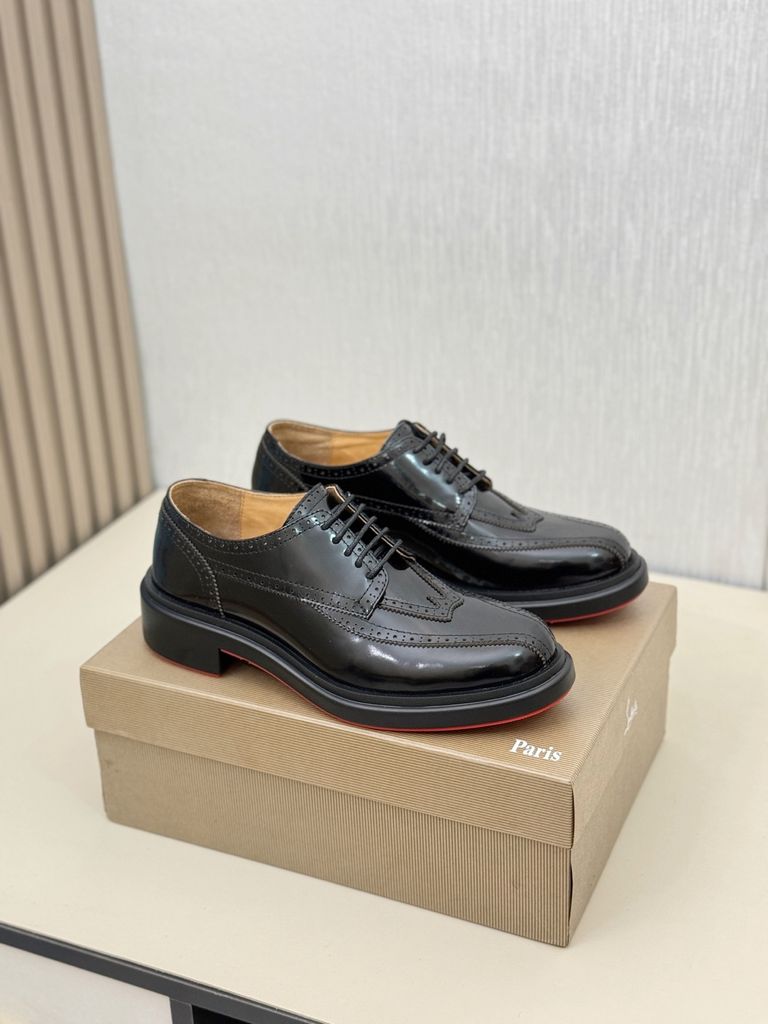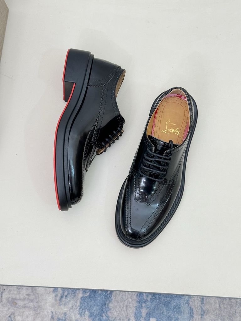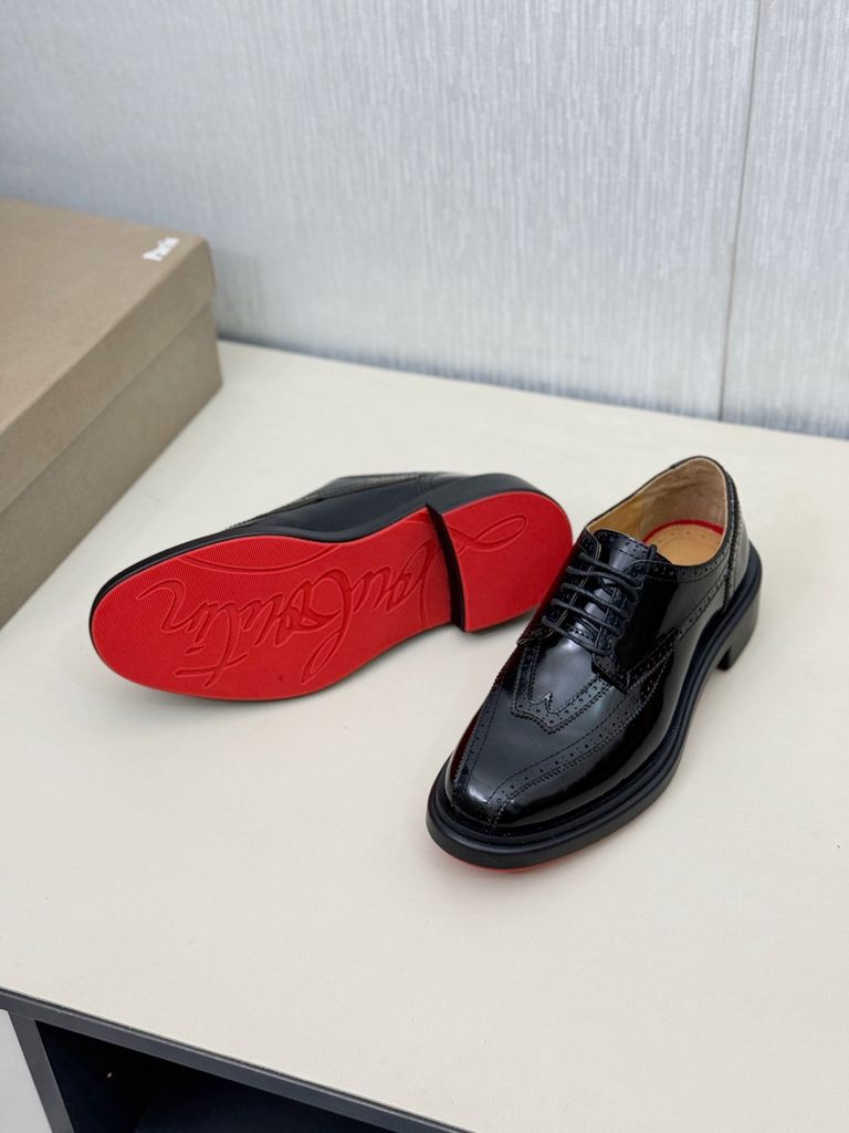 GIÀY NAM BUỘC DÂY CL* DA BÓNG ĐẾ ĐỎ VÂN DẬP LỖ NỔI LỊCH LÃM CHUẨN QUÝ ÔNG 2550k (HÀNG ORDER QUỐC TẾ)