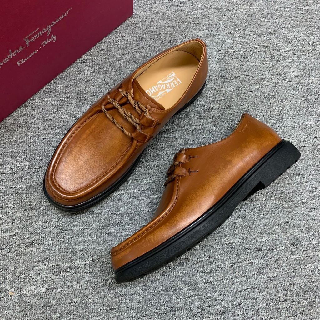 GIÀY NAM DERBY FERR* DA BÒ NÂU CARAMEL – MŨI APRON MAY VIỀN 2350k (HÀNG ORDER QUỐC TẾ)