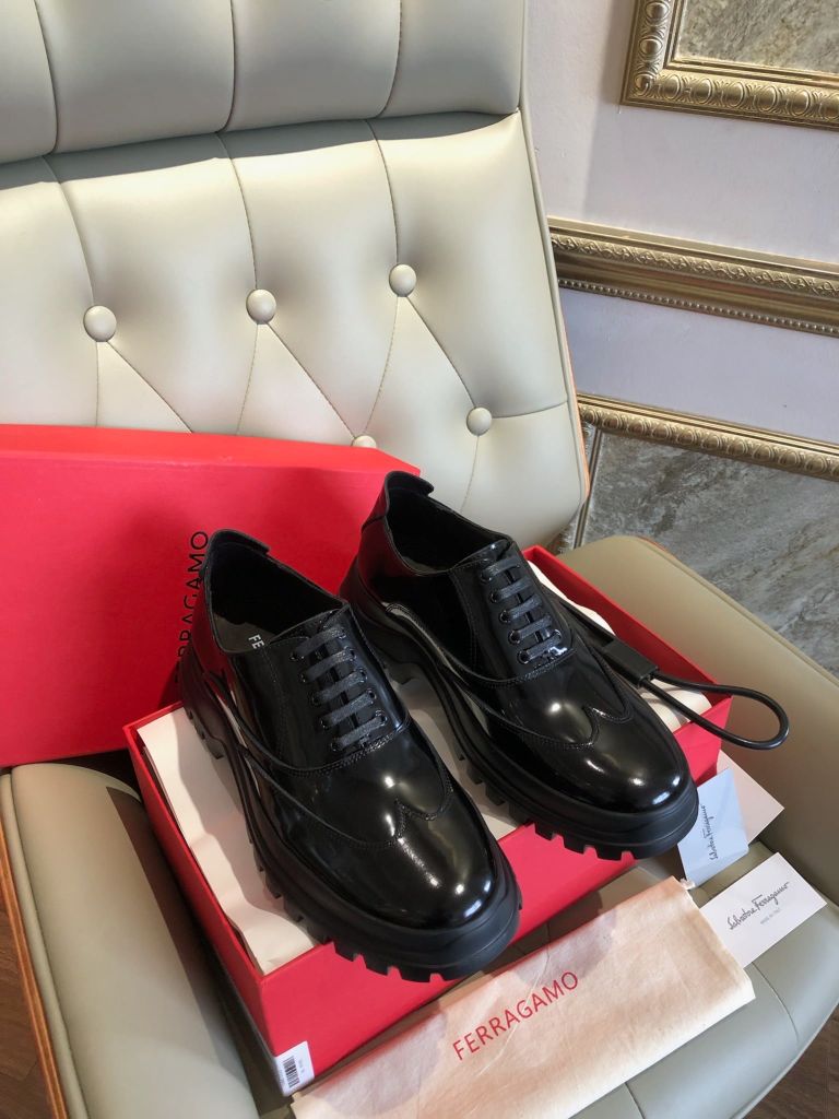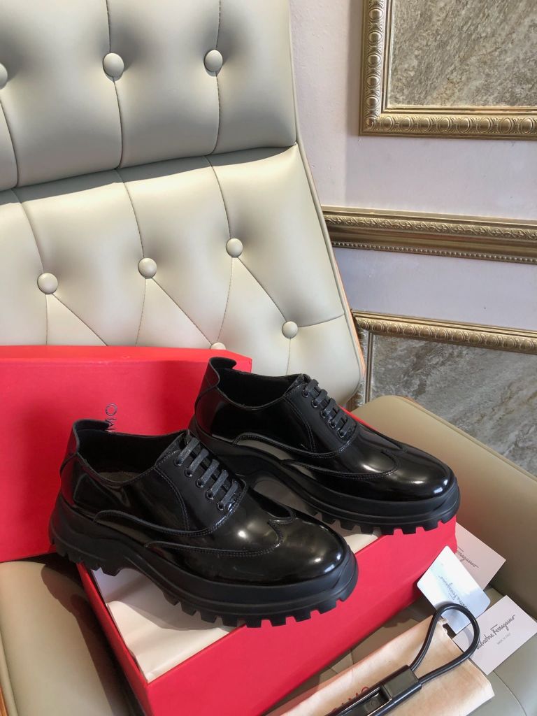 Đôi derby đen bóng tạo điểm nhấn quyền lực ngay khi nhìn, lên chân gọn gàng mà vẫn đầy khí chất – sẵn sàng cho lịch trình di chuyển, gặp gỡ đối tác hay tiệc tối tinh tế.