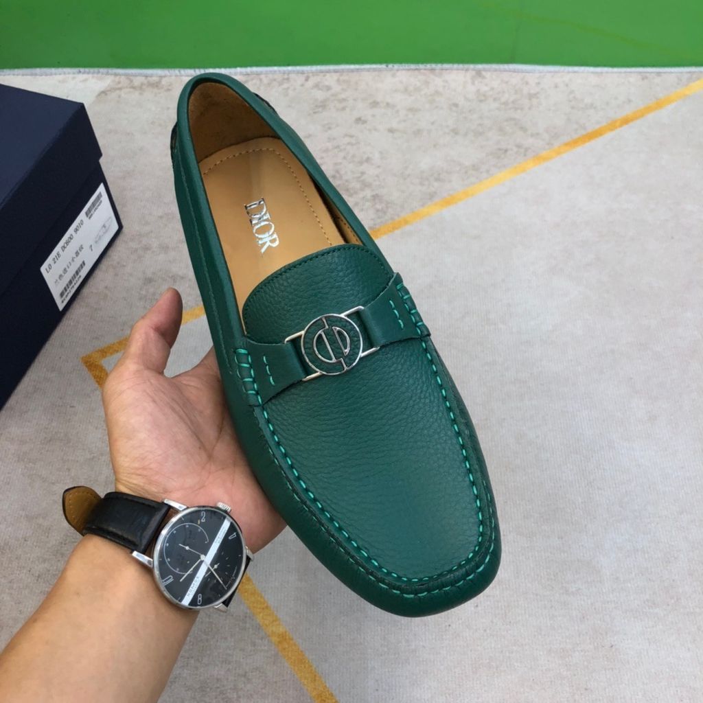 GIÀY NAM Di*or* DRIVER LOAFER HẠT ĐẬU – XANH NGỌC, DA BÊ VÂN MỊN 2200k