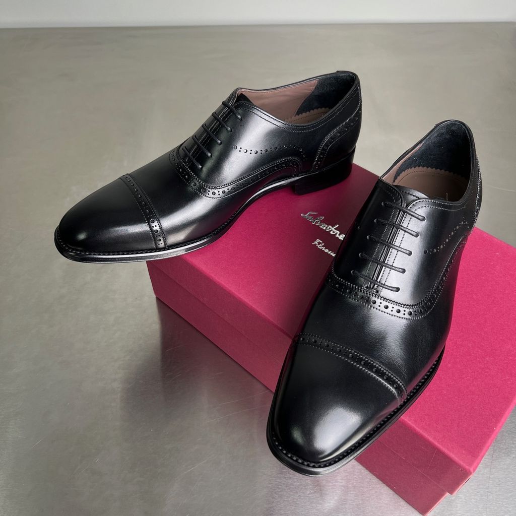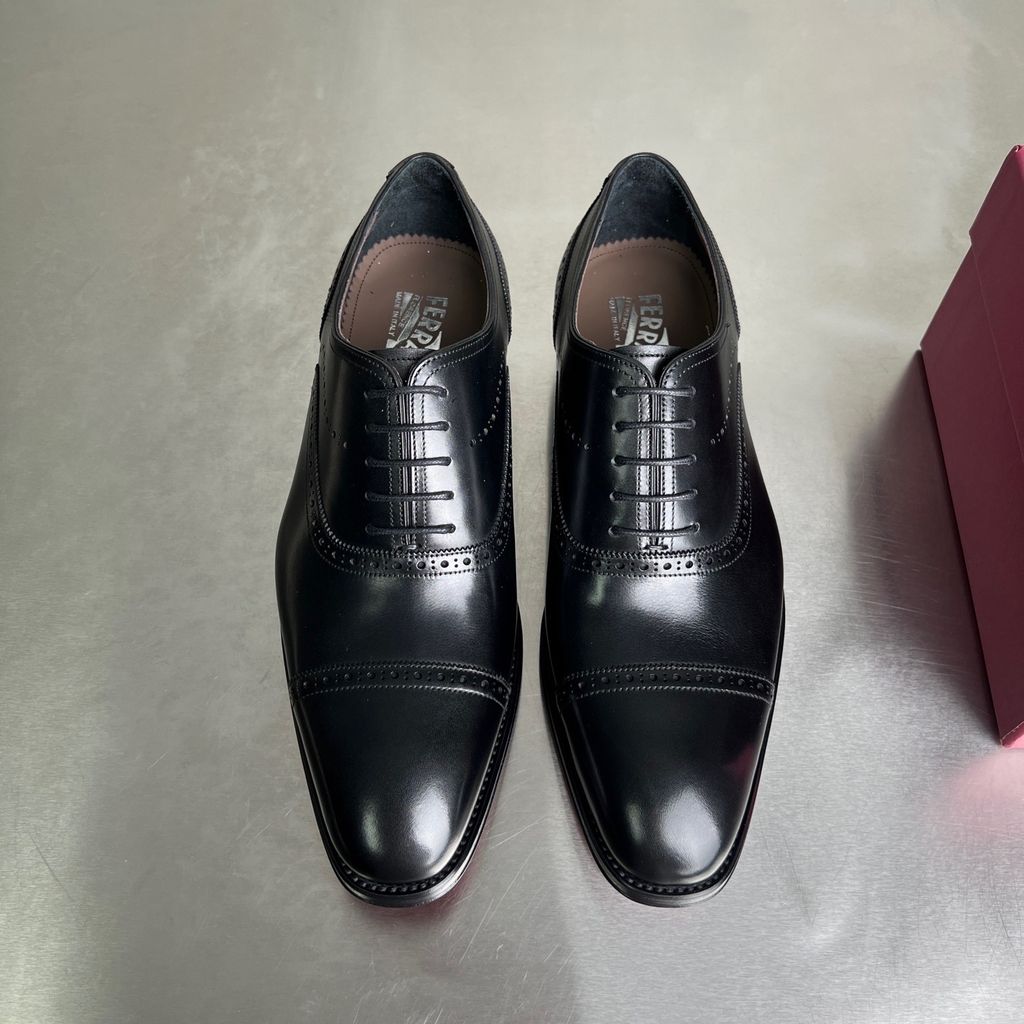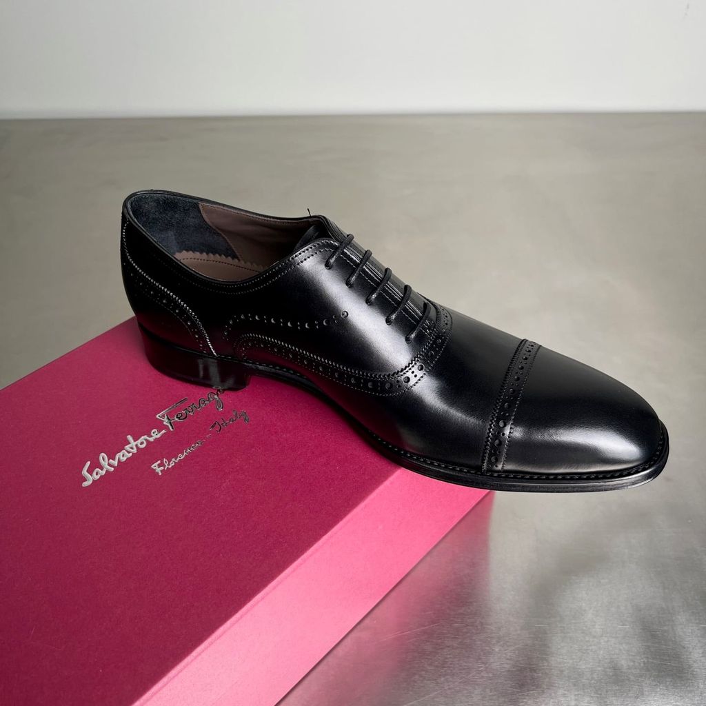 GIÀY NAM FERR* DA BÒ OXFORD BUỘC DÂY MŨI CAPTOE ĐEN LỊCH LÃM (HÀNG ORDER QUỐC TẾ)