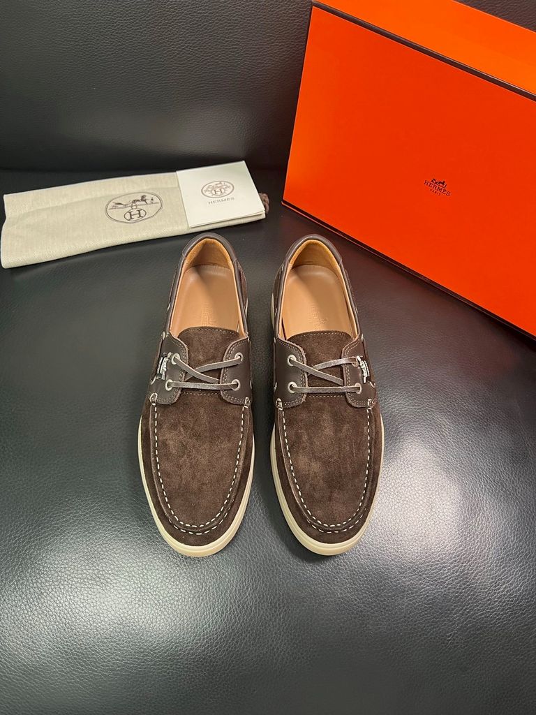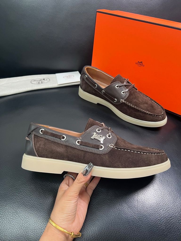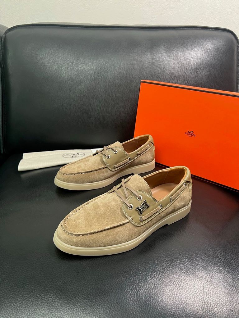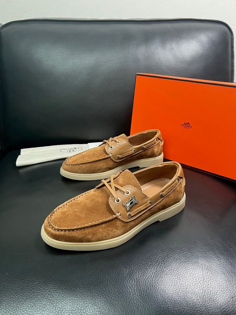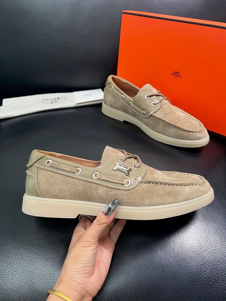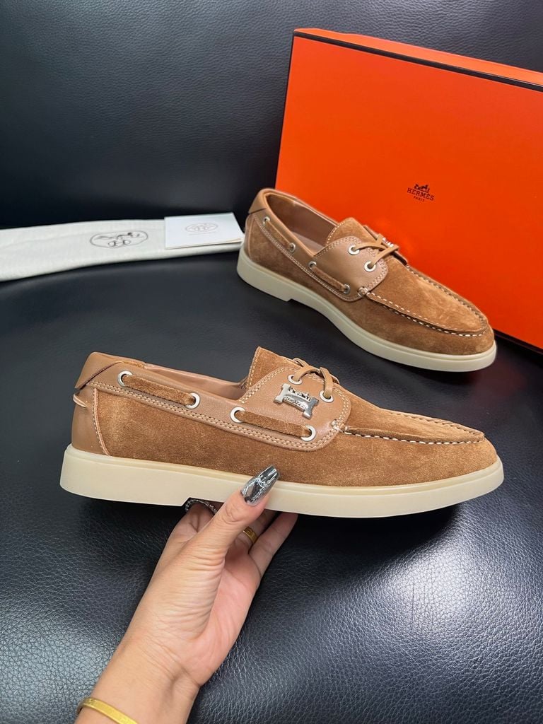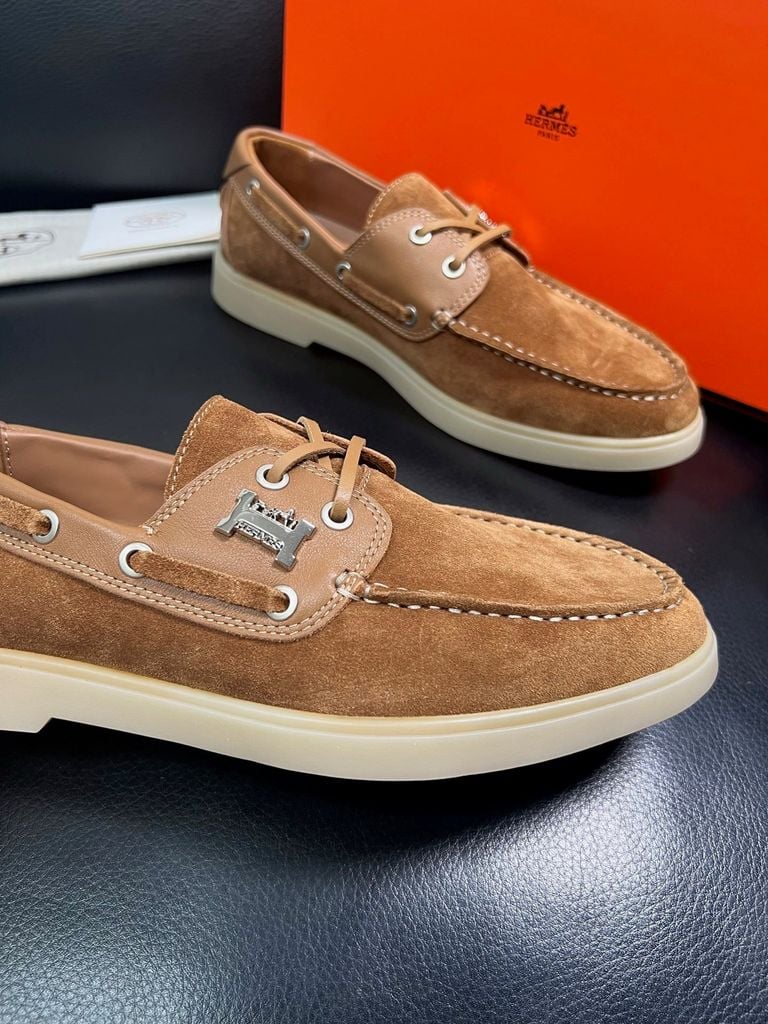GIÀY NAM Herme* BOAT SHOE DA BÊ NHUNG Ý – MŨI MOC STITCH, ĐẾ ÊM NHẸ 2300k