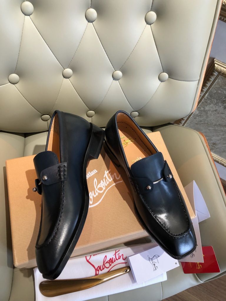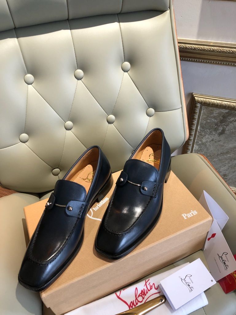 • Thiết kế & dấu ấn: Phom dáng loafer cổ điển, mũi tròn vừa phải, tạo cảm giác lịch sự nhưng không cứng nhắc. Đế đỏ trứ danh – biểu tượng nhận diện đầy cuốn hút của thương hiệu, tăng điểm nhấn nổi bật cho diện mạo.