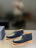 Đôi loafer cổ lửng tông xanh navy giúp outfit nam giới trông chỉn chu, khác biệt nhưng vẫn rất dễ phối trong mọi lịch trình di chuyển hằng ngày.