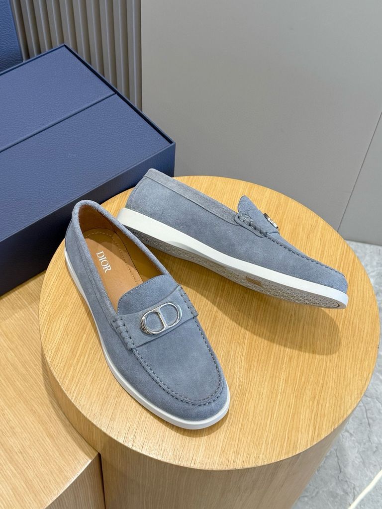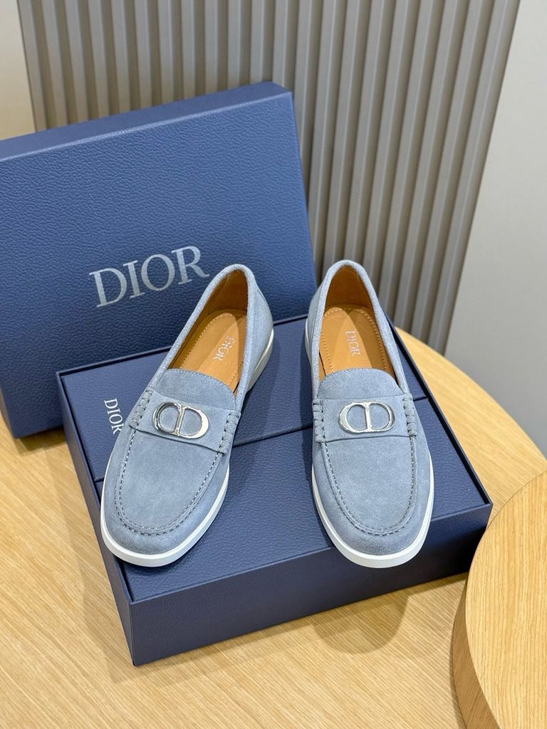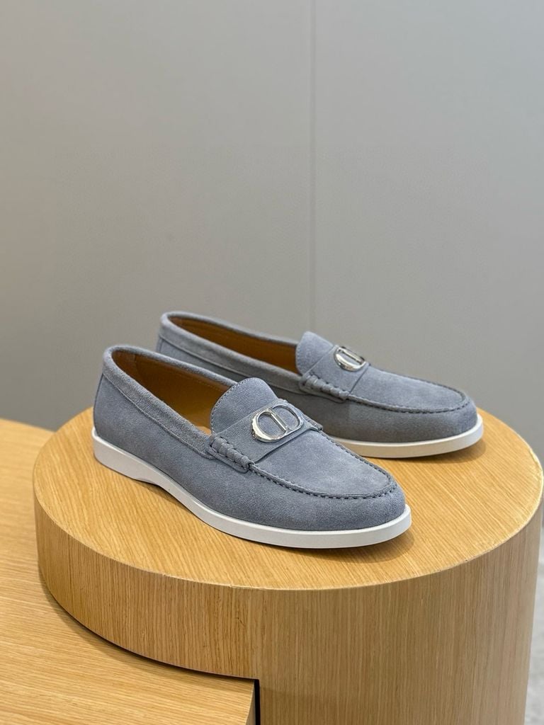 • Thân giày nhung navy sang trọng, nổi bật logo chữ D tinh tế ở quai trước.