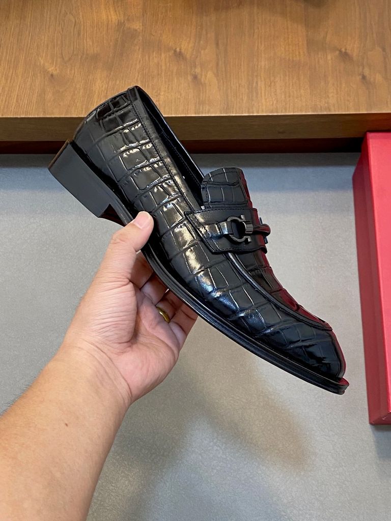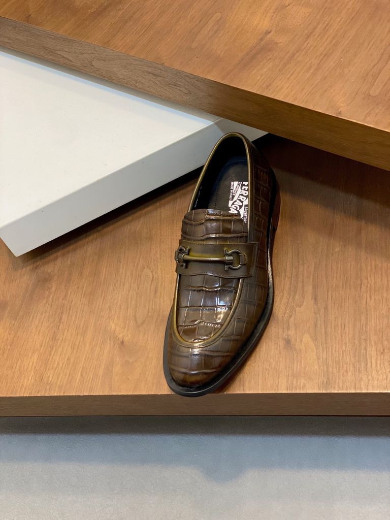 GIÀY NAM LOAFER FERRA DA BÒ DẬP VÂN CÁ SẤU NÂU – THỦ CÔNG LỊCH LÃM* 3400k (HÀNG ORDER QUỐC TẾ)