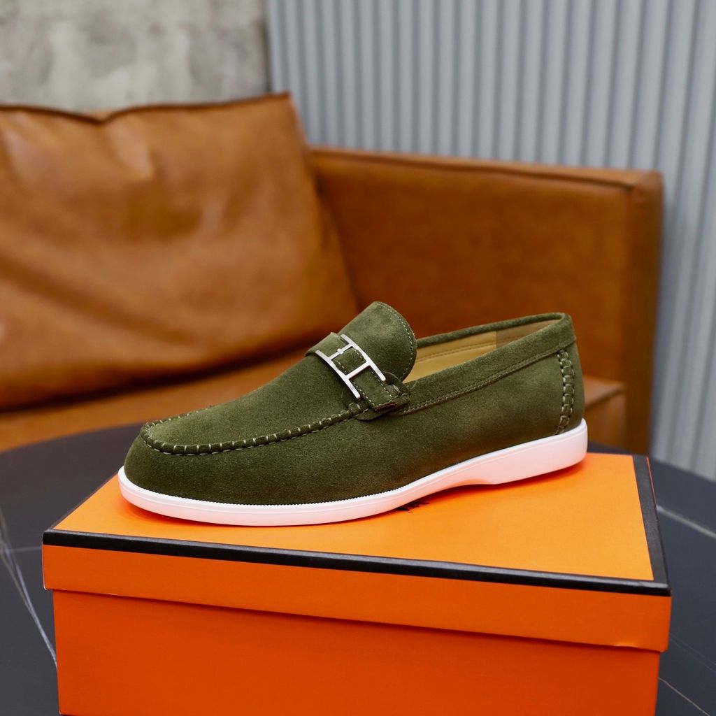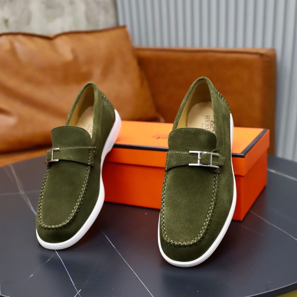 GIÀY NAM LOAFER HERM* DA LỘN XANH – ĐẾ 3CM SIÊU NHẸ, CHI TIẾT CHỮ H TỐI GIẢN 1800k (HÀNG ORDER QUỐC TẾ)