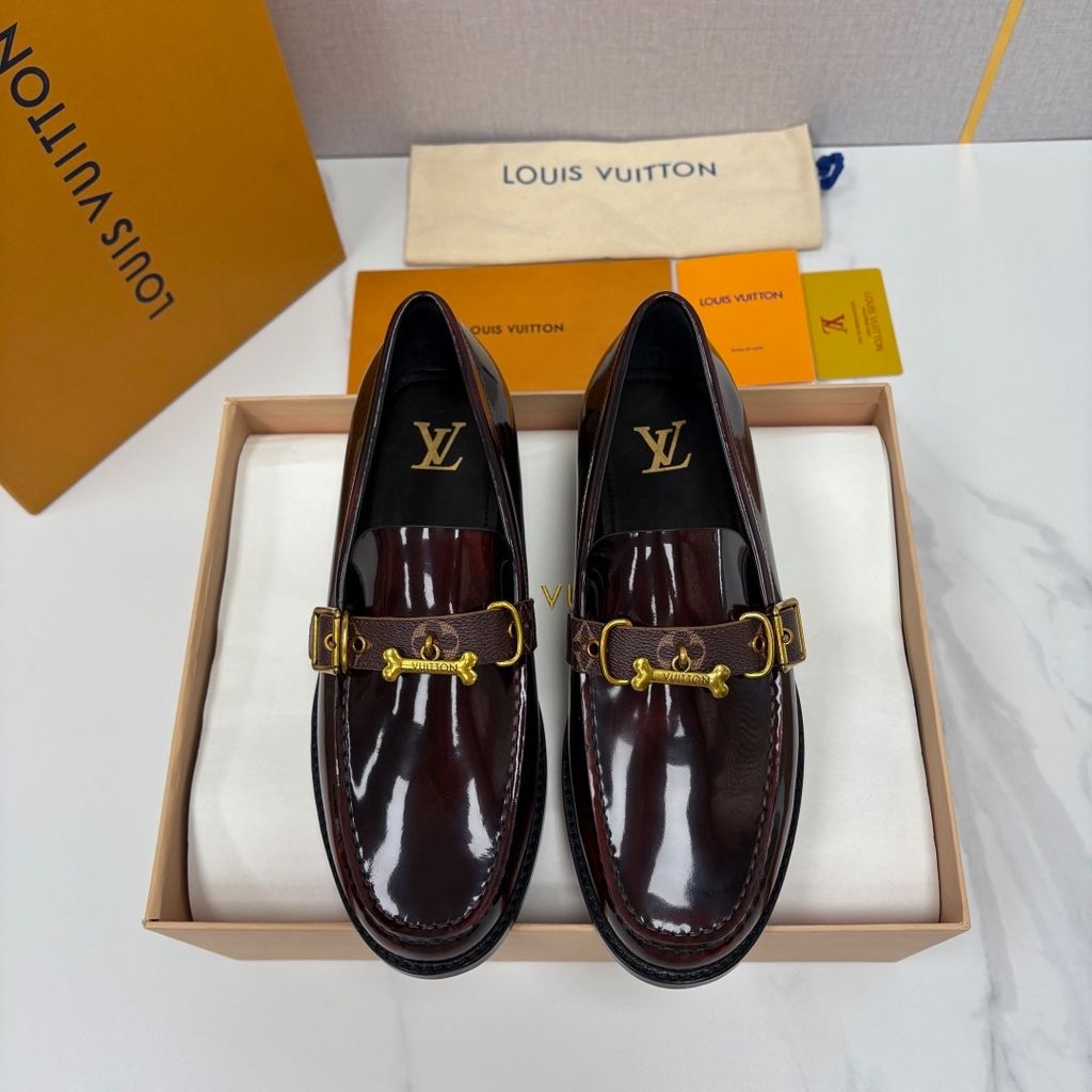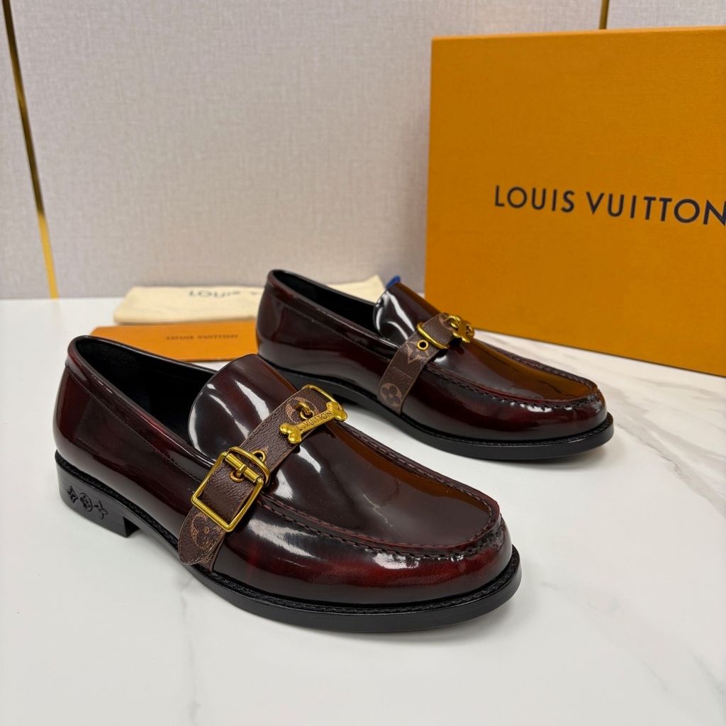 Đôi loafer LV* da bóng sắc bordeaux sâu sang là kiểu giày nhìn vào đã thấy khí chất chỉn chu – vừa đủ nổi bật để gây ấn tượng, vừa tinh tế để đi cùng mọi bộ suit cao cấp.