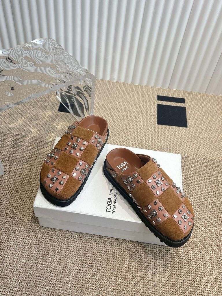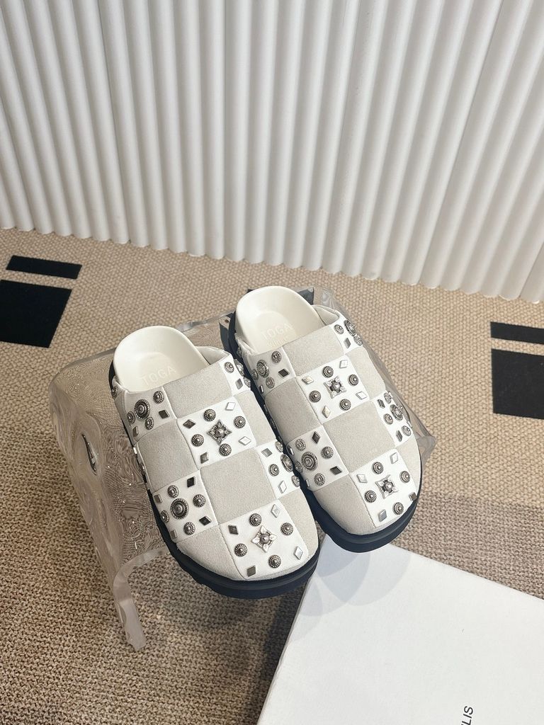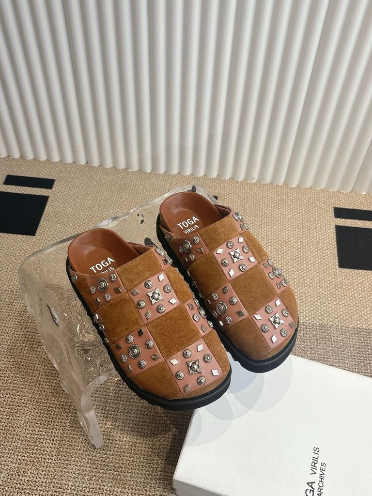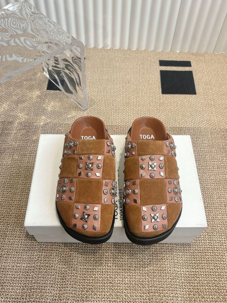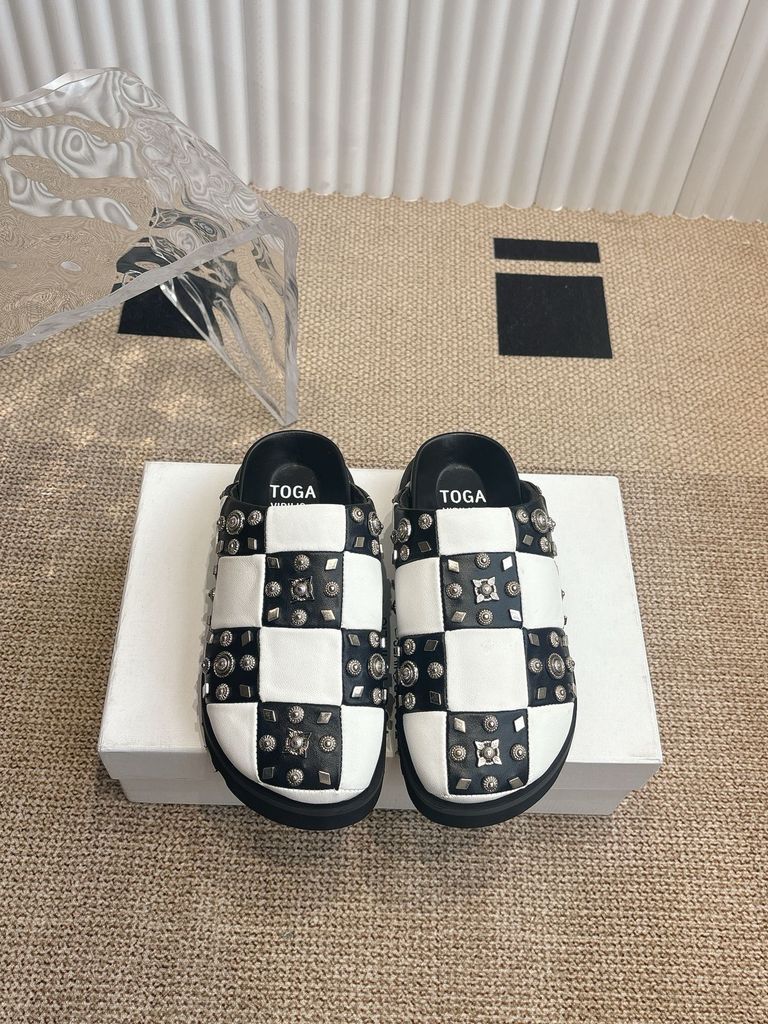 GIÀY NAM NỮ TOGA* MULE ĐÍNH ĐINH TÁN – DA CHẦN Ô CARO, ĐẾ DÀY ÊM 1550k