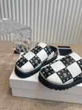 • Form mule tròn mũi, slip-on nhanh gọn, hai quai rộng bản tạo mảng đan caro bắt mắt