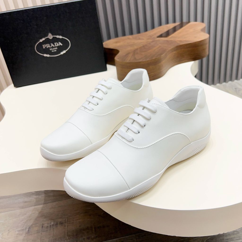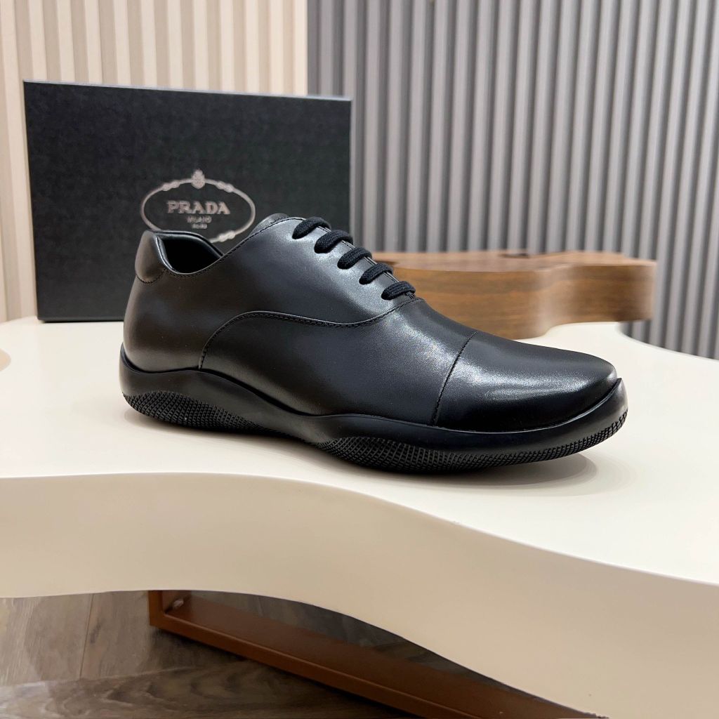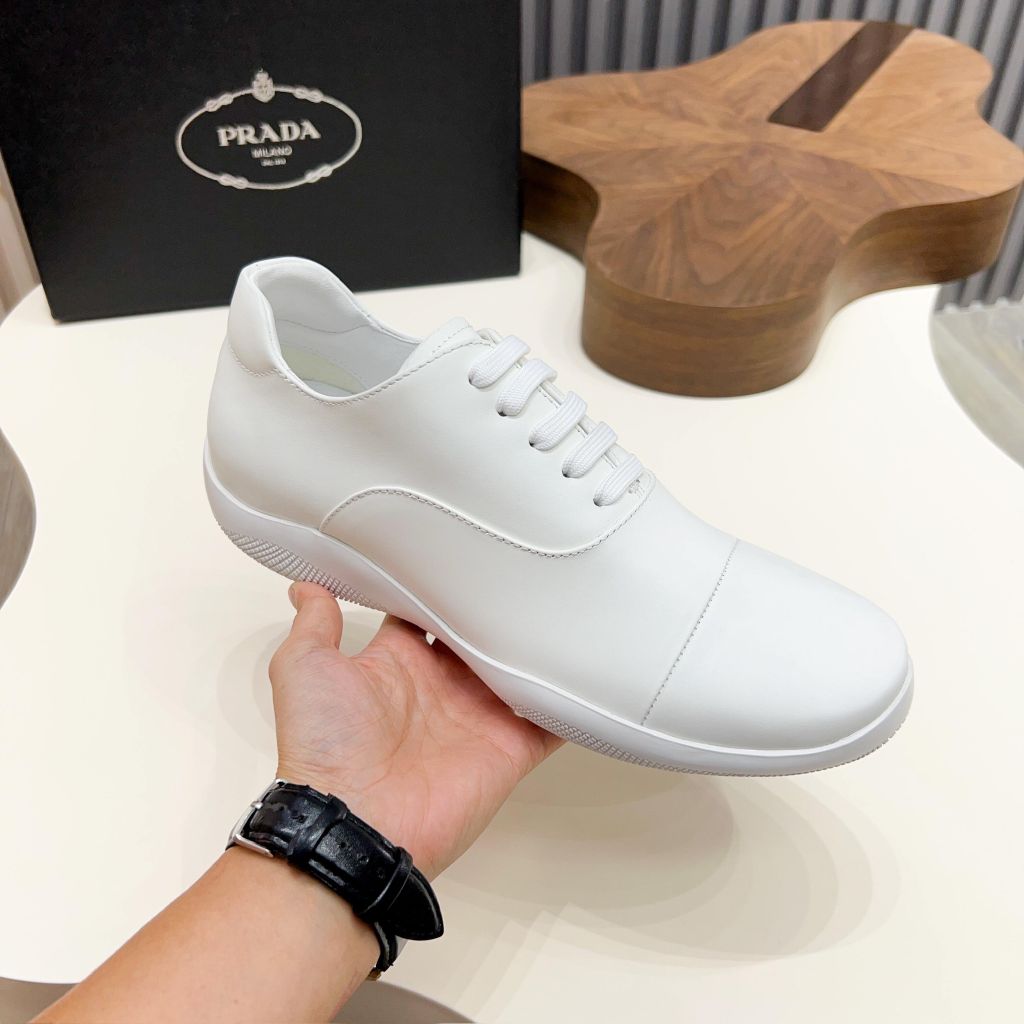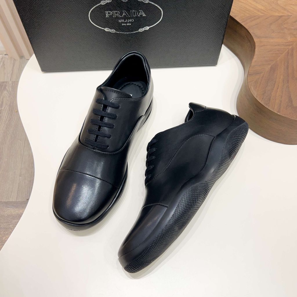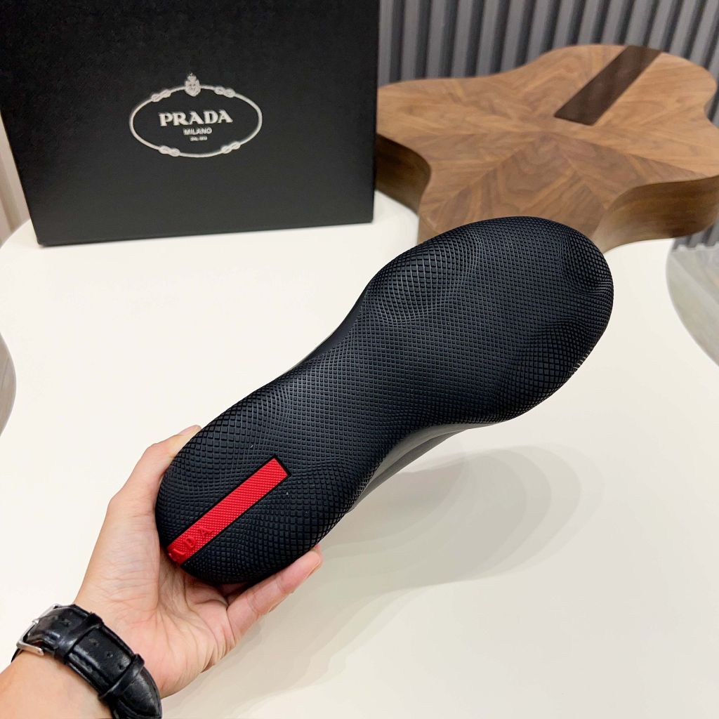 GIÀY NAM PRAD* LACE-UP THỂ THAO DA ĐEN – FORM GỌN, LOGO TAM GIÁC KIM LOẠI (MÙA MỚI) 2200k